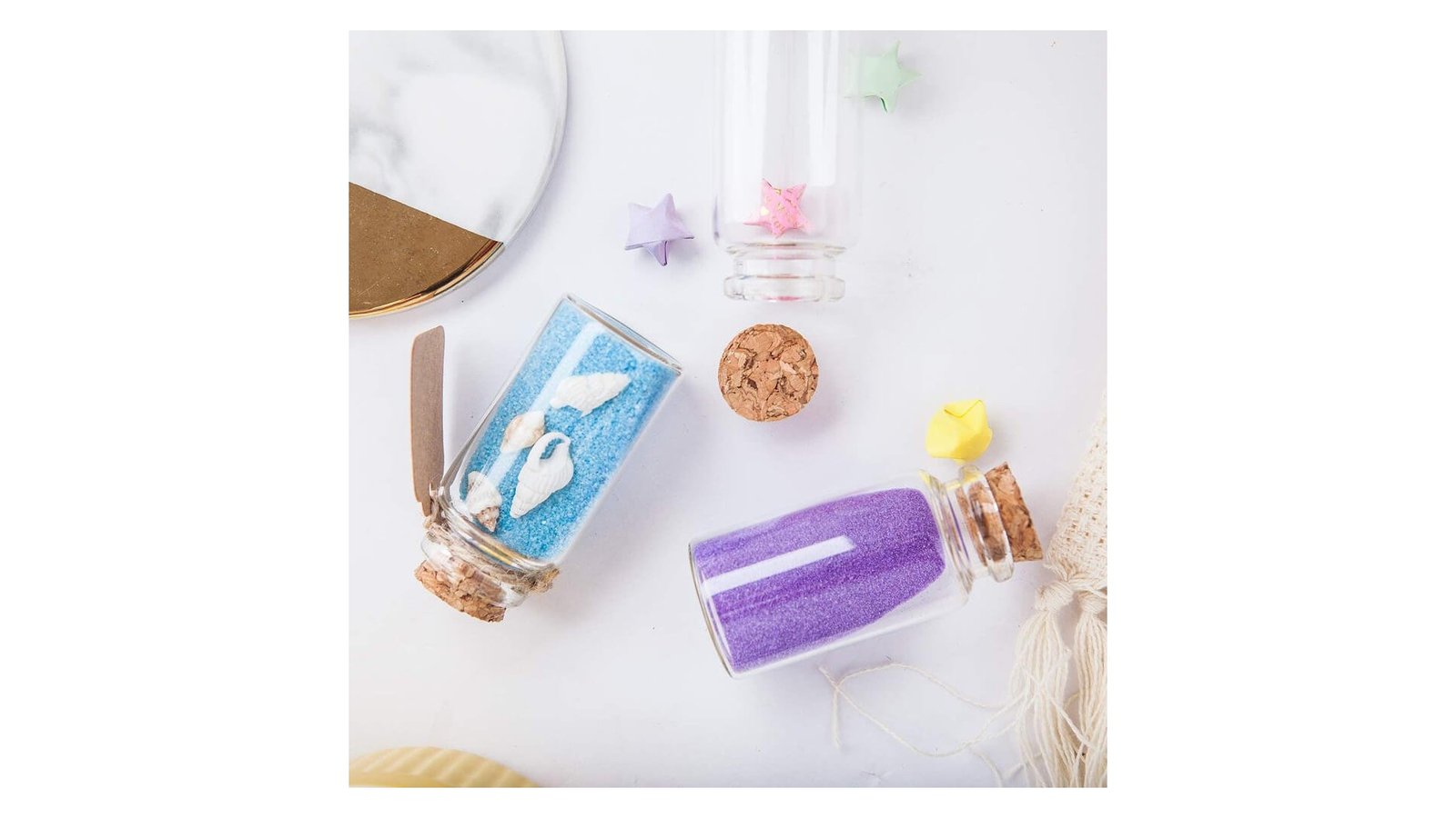 Sticluță transparentă reutilizabilă cu dop de plută, descoperiți o modalitate elegantă și ecologică de a stoca, organiza și transporta o varietate de articole. Caracteristici: Material durabil: Sticluța rezistentă și dopul de plută asigură durabilitate și sustenabilitate. Design transparent: Permite vizualizarea, facilitând identificarea și monitorizarea conținutului Dop etanș: Previne scurgerile și menține prospețimea lichidelor și a altor articole stocate. Utilizare: Păstrarea lichidelor: Perfectă pentru uleiuri esențiale, parfumuri, loțiuni, lichide DIY, cocktailuri artizanale, siropuri, cadouri, mostre și multe altele. Organizarea obiectelor mici: Ideală pentru a stoca și organiza pietricele decorative, nisip colorat, mostre de materiale și alte obiecte mici. Beneficii: Versatilitate: