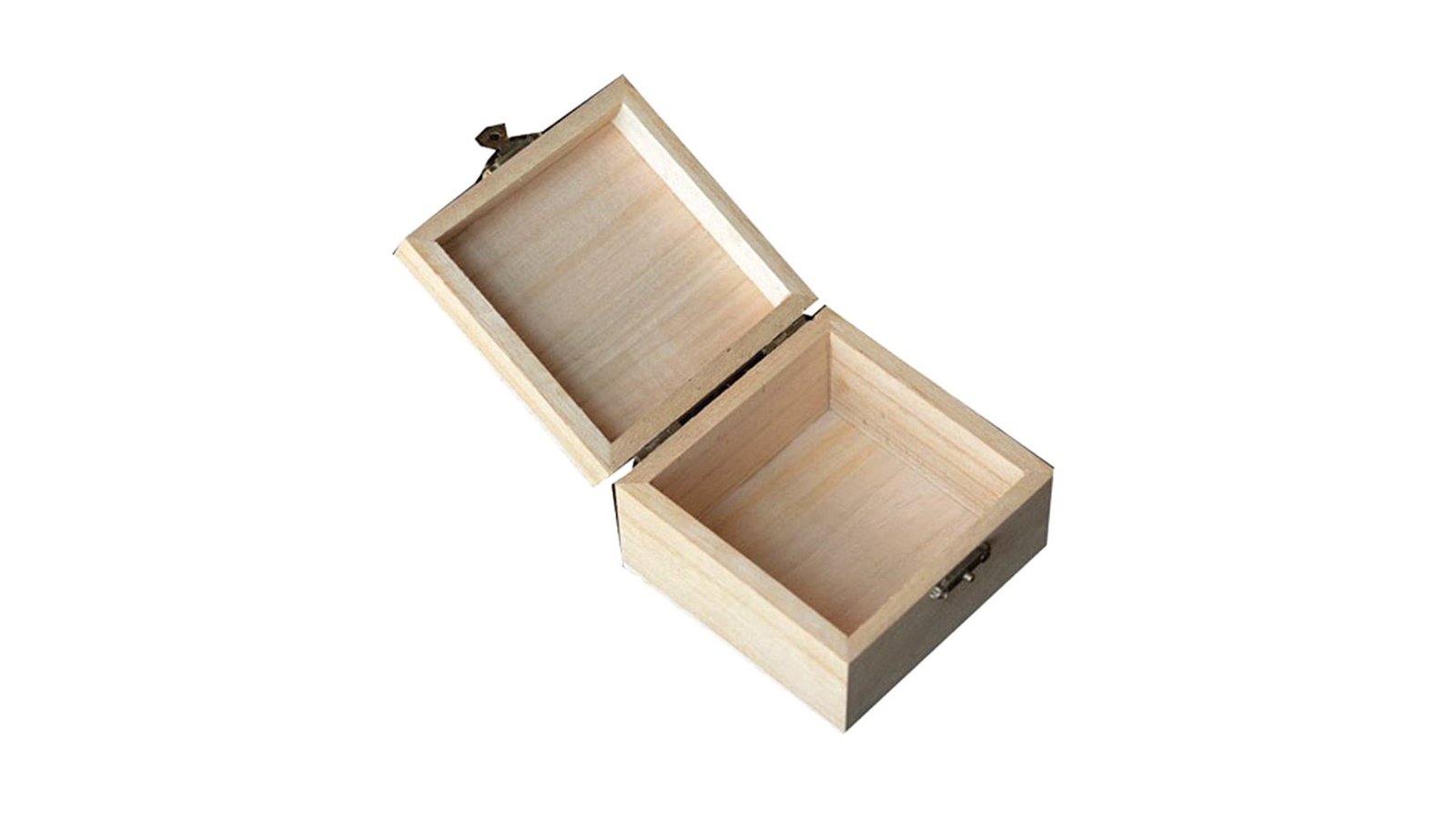 Cutie pătrată din lemn mică 8x8x4cm cutie din lemn de pin folosită în proiectele DIY ideală pentru personalizat prin tehnica șervețelului, decoupage, pictat, pirogravură și altele ambalată în pungă de plastic balamalele și închizătoarea sunt din metal poate fi folosită și ca o cutie de bijuterii material nefinisat ce permite lăcuire/vopsire/pictare/printare