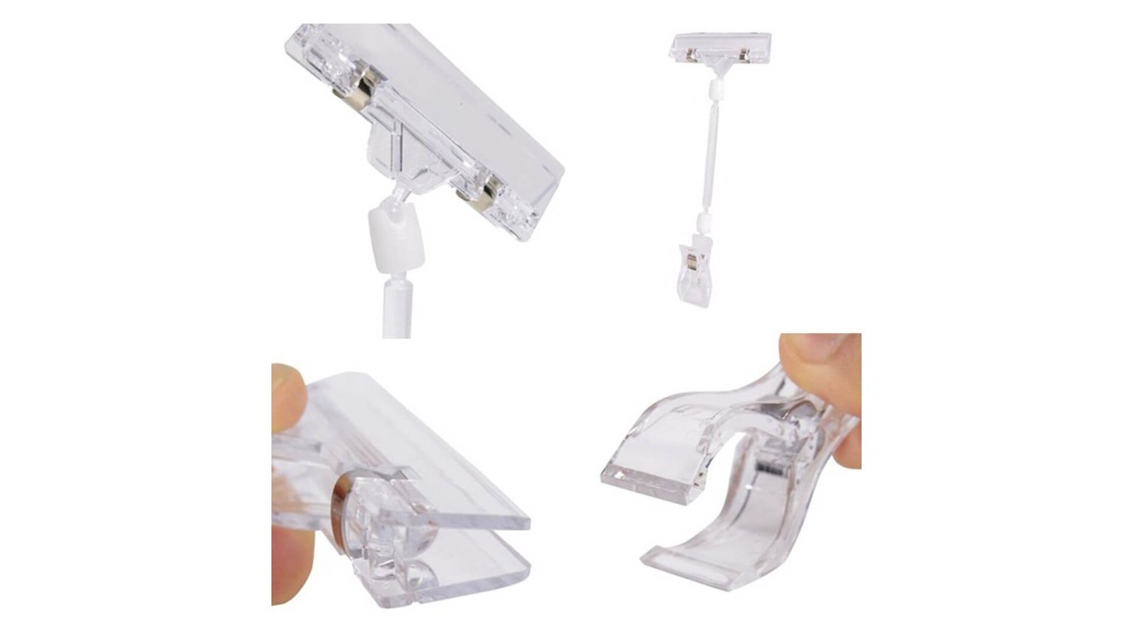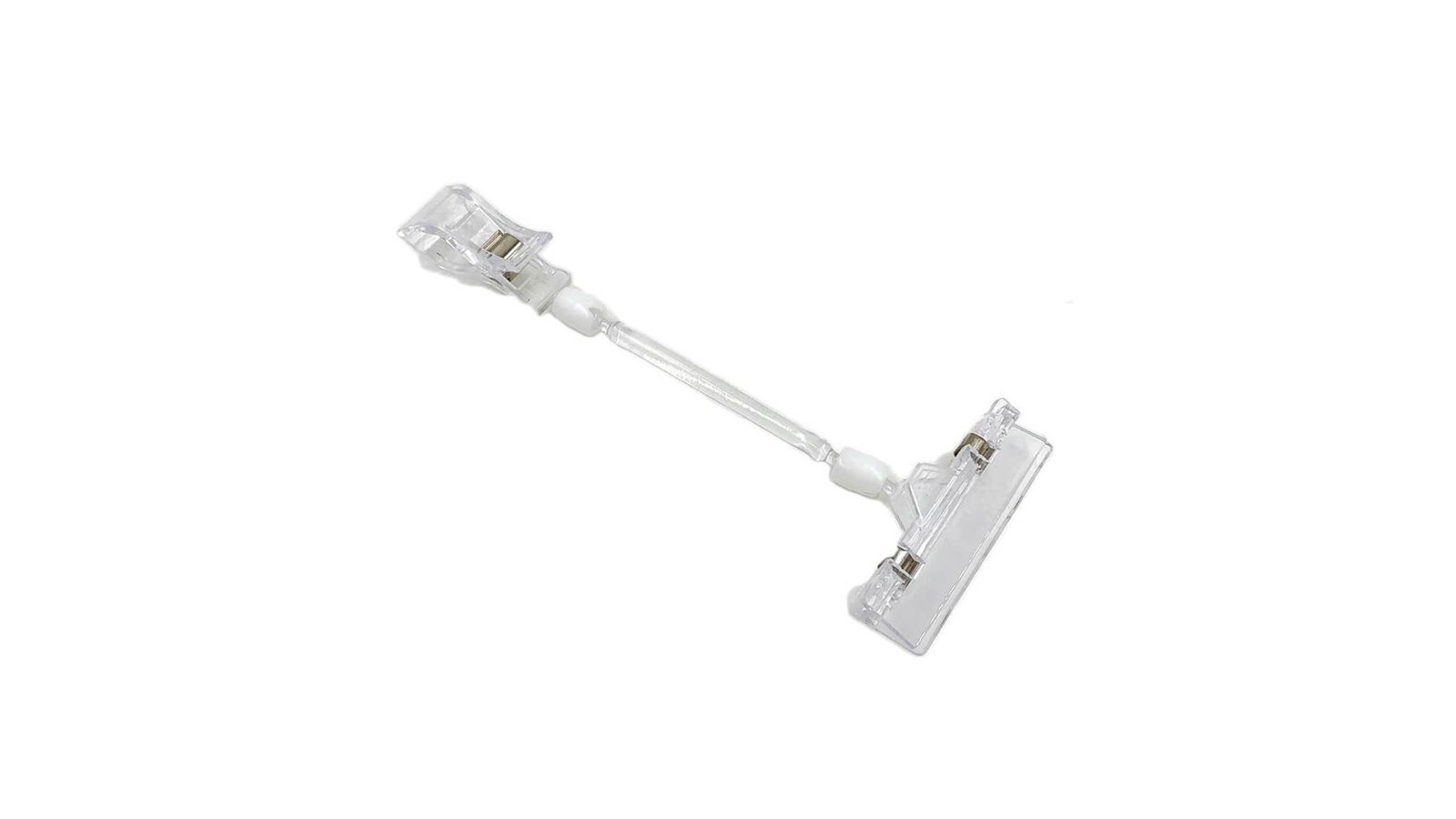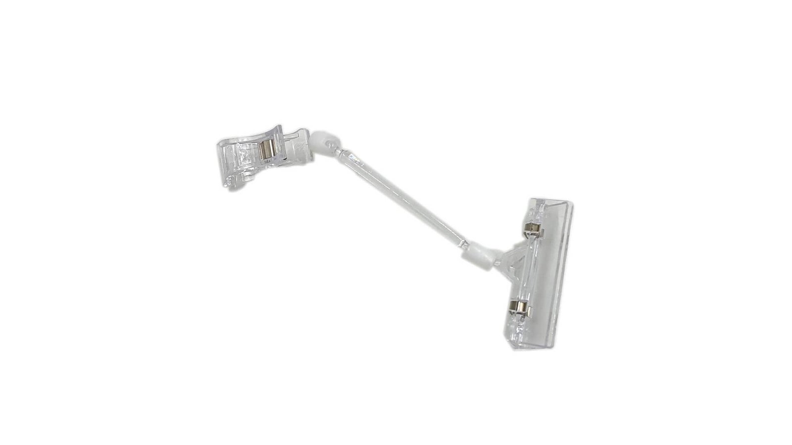 Suport plastic cu braț Suport de plastic ce poate fi folosit pentru a afișa mesaje, prețuri, etc. Suportul dispune de clești în ambele capete; capetele pot fi rotite în orice direcție Se poate prinde pe mobilă, țevi, bare Poate fi folosit în interior cât și în exterior Ușor, versatil, poate avea nenumărate utilizări