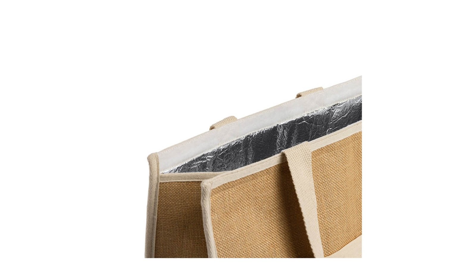 Sacoșă iută termoizolantă 43x35x18cm este o opțiune durabilă și ecologică pentru păstrarea alimentelor și a băuturilor reci sau calde. Caracteristici: Fabricată din iută naturală, material durabil și biodegradabil Strat termoizolant încorporat pentru menținerea temperaturii dorite Dimensiuni compacte, ușor de transportat Dispune de inchidere cu arici (velcro) pentru a pastra temperatura din interior Are un design modern si este disponibila intr-o singura culoare - naturala. Utilizare: Plajă, picnic, excursii în aer liber Pachete de prânz pentru școală sau muncă Cumpărături de alimente și băuturi la magazin Călătorii și călătorii cu mașina Evenimente sportive și de divertisment în aer liber Beneficii: Reduce poluarea cu plastic prin utilizarea unei alternative eco-friendly Economisește bani