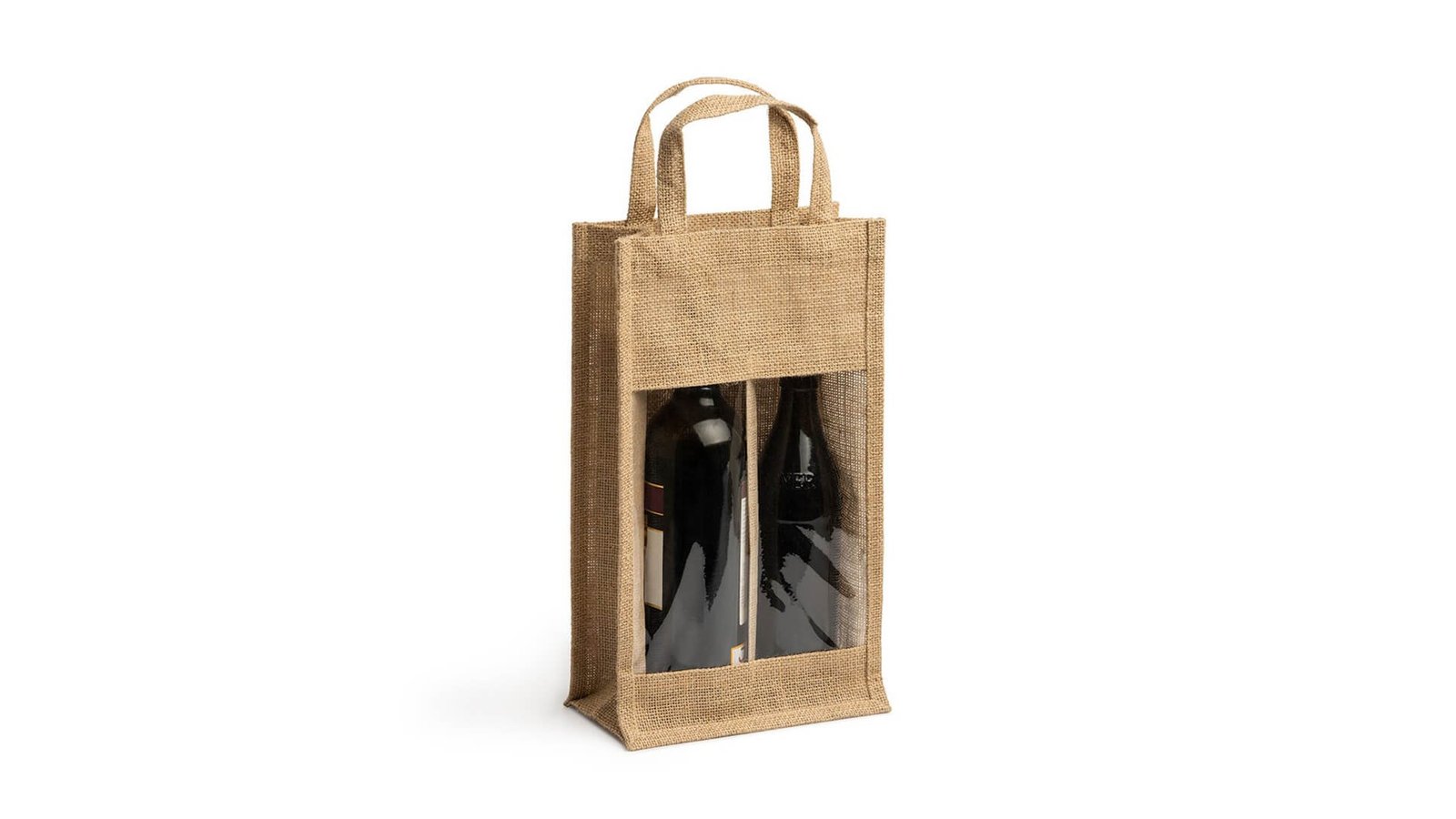 Sacoșă dublă din iută pentru sticle de vin cu fereastră