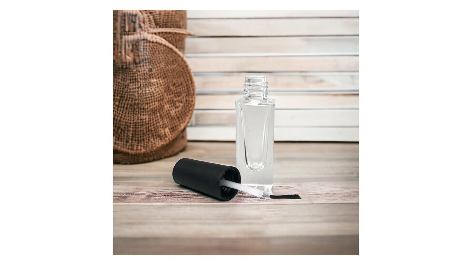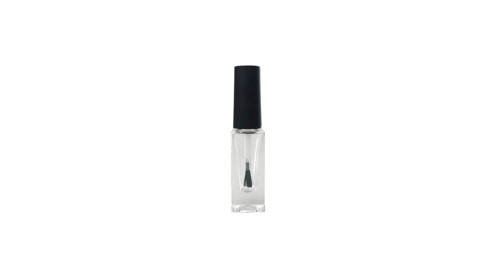 Sticluță transparentă înaltă cu pensulă ojă și capac negru 5ml