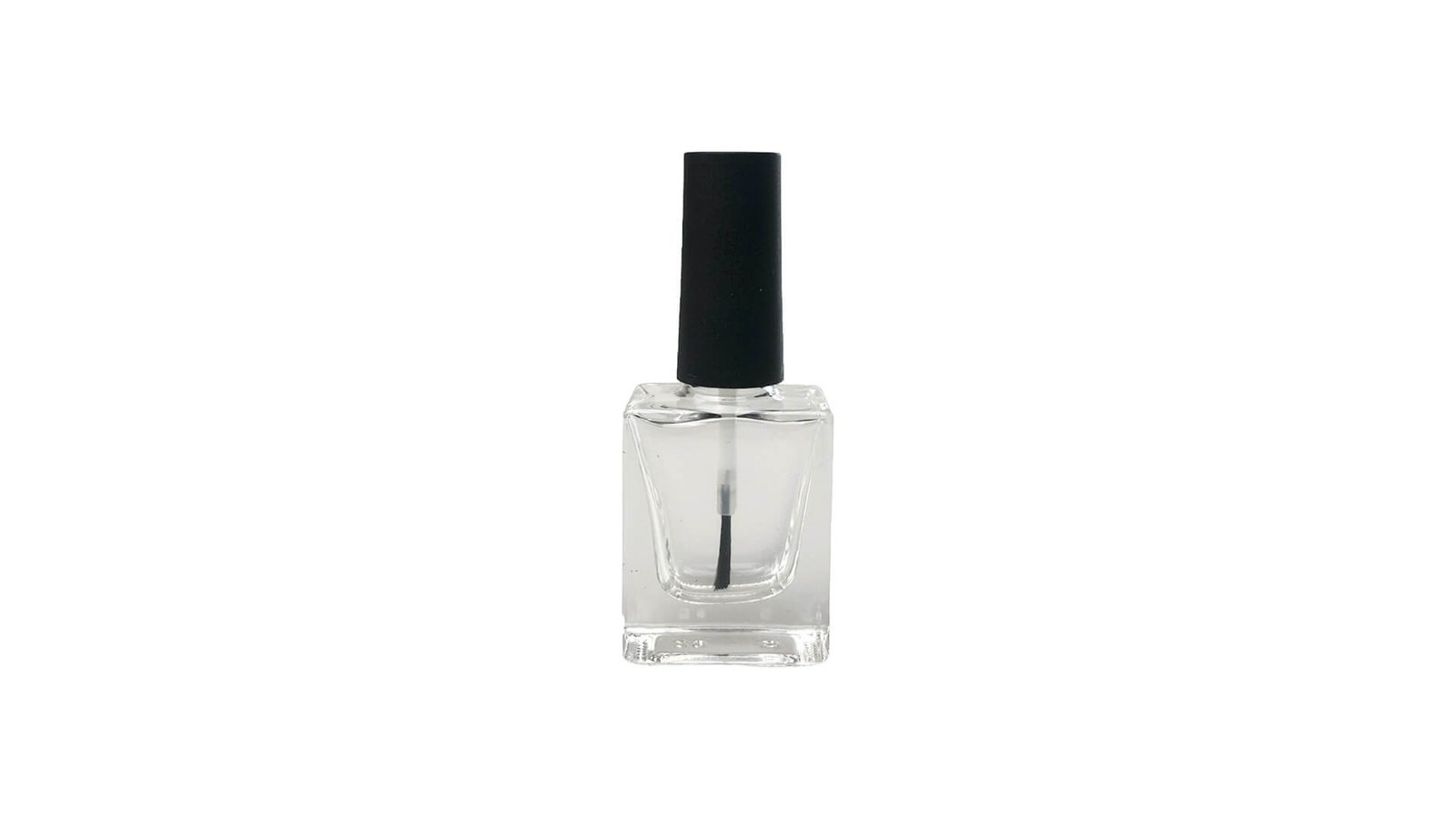 Sticluță transparentă pătrată cu pensulă ojă și capac negru 10ml