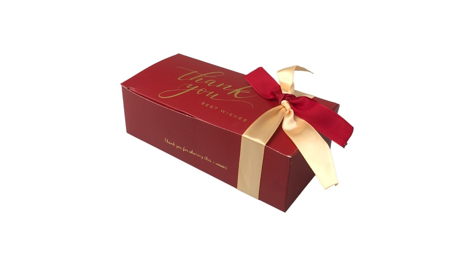 Cutie hârtie cu fundă Thank you 14x7x4.5cm - roșu este o alegere perfectă pentru a aduce un zâmbet pe fața persoanelor dragi. Este fabricată din hârtie de calitate superioară și este elegantă în designul său. Caracteristici: Cutie de hârtie cu fundă pentru cadouri Fabricată din hârtie rezistentă și eco-friendly Dimensiuni ideale pentru a încadra diferite obiecte Fundă decorativă pentru un aspect rafinat Ușor de asamblat și de desfăcut Utilizare: Cadouri pentru aniversare sau diferite evenimente festive: nunți, botezuri etc. Ambalarea amintirilor prețioase, cum ar fi fotografii sau bilețele Decorarea evenimentelor tematice și a meselor festivă cu bomboane, prăjituri sau mici cadouri pentru oaspeți. Beneficii: Creează o ambianță specială pentru cadourile oferite Adaugă un element suplimentar