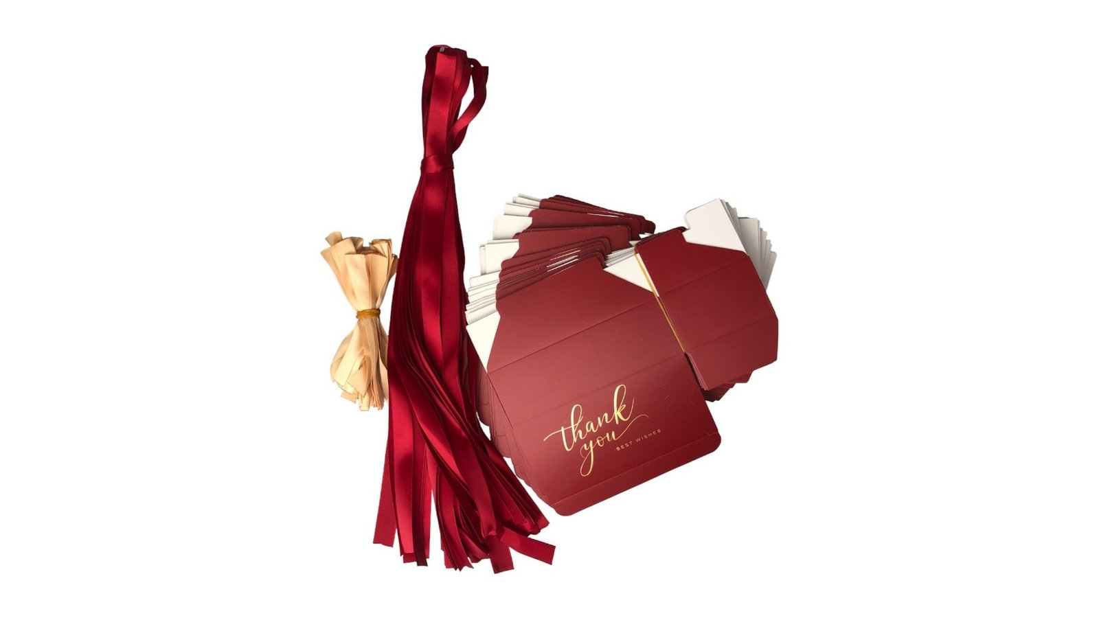 Cutie hârtie cu fundă Thank you 14x7x4.5cm - roșu (set 50 buc)