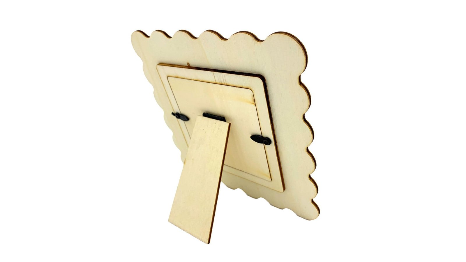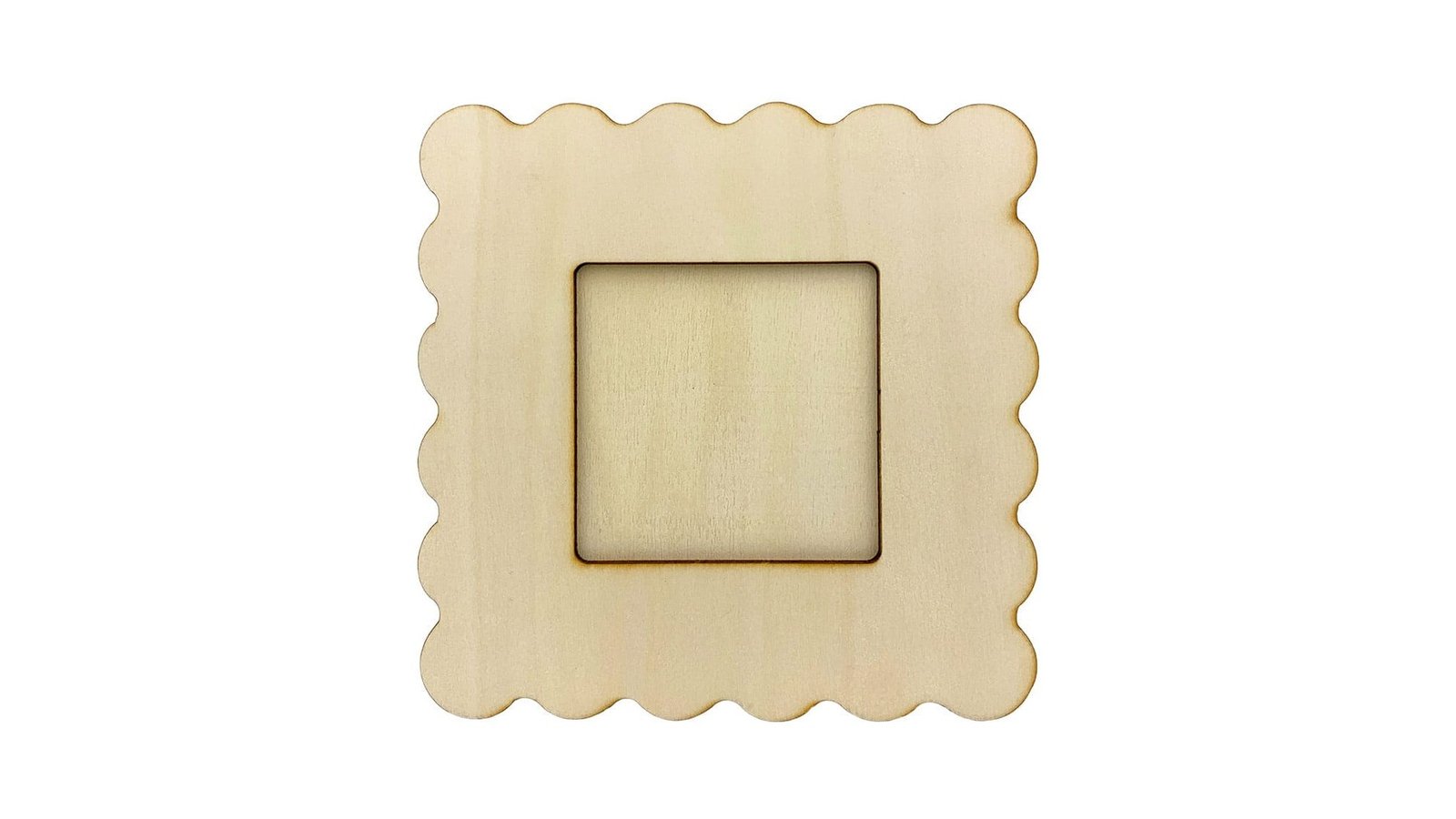 Ramă foto lemn - ondulată dimensiune poză: 7x7cm ramă foto fabricată din placaj de lemn de pin dispune de suport de birou poza se introduce prin spatele ramei folosită în proiectele DIY ideală pentru personalizat prin tehnica șervețelului, decoupage, pictat, pirogravură și altele ambalată în pungă de plastic se poate combina împreună cu alte articole de lemn pentru seturi de botez, tăieri de moț, Paște, Crăciun, Valentine's Day, mărțișor, zile de naștere. etc.