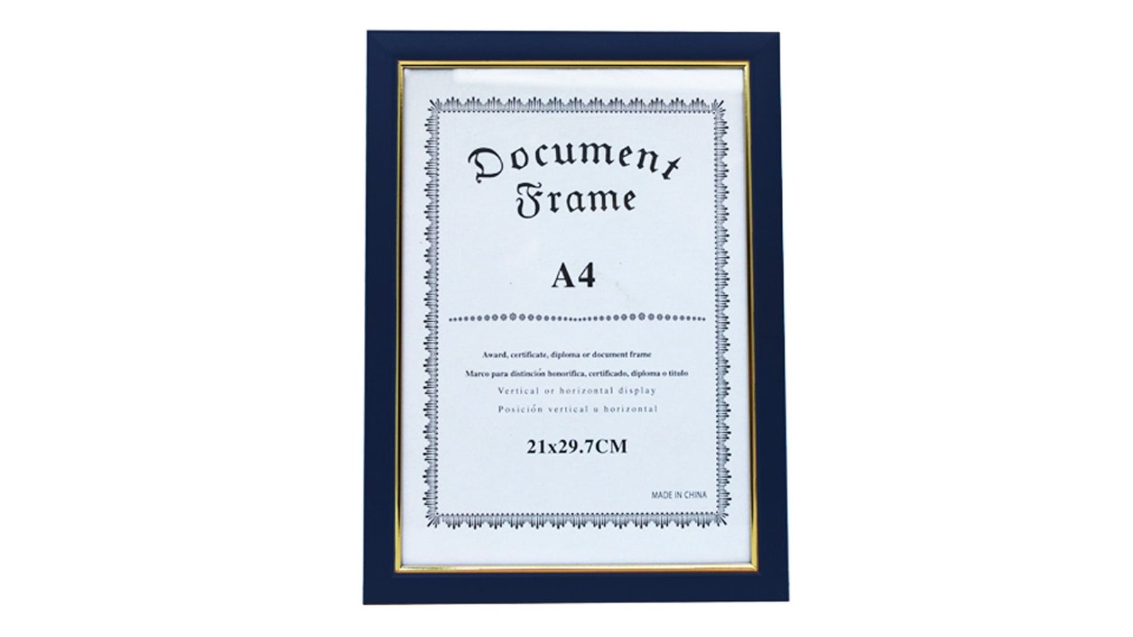 Ramă foto A4 - model Madrid albastru-auriu dimensiunea pozei: 21x30cm - A4 rama foto este fabricată din PS de înaltă calitate și de o densitate ridicată rama imită lemnul vopsit pot fi înrămate poze, diplome, certificate sau documente, orientate landscape sau portrait temă ramă: zi onomastică, zi de naștere, membru nou al familiei, ziua mamei, ziua tatălui, aniversare, Valentine's Day, mărțișor, Crăciun, Paște ramele sunt însoțite de suport pentru birou și agățătoare reglabilă ramele sunt ambalate în folie de plastic și au colțare din carton