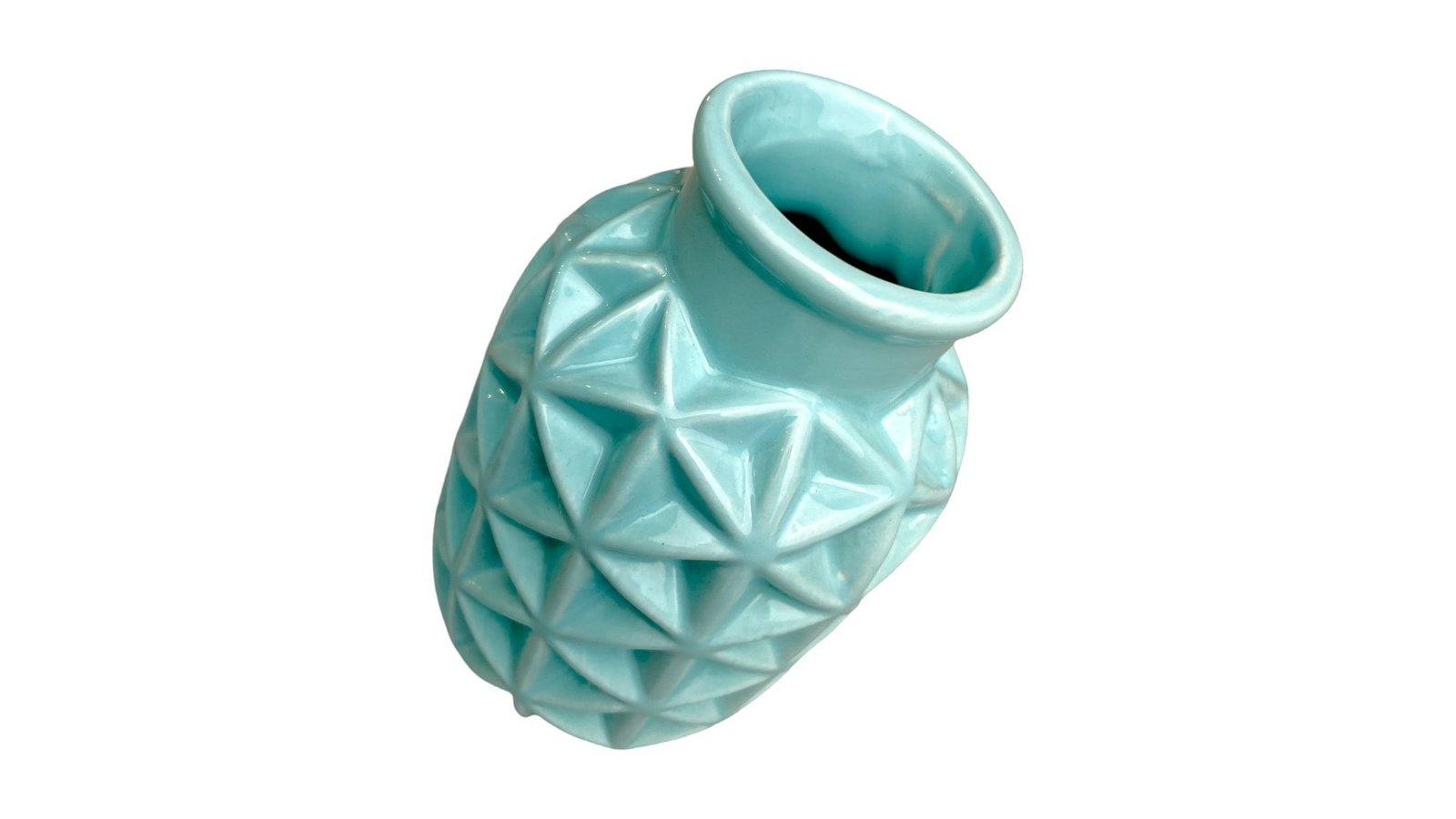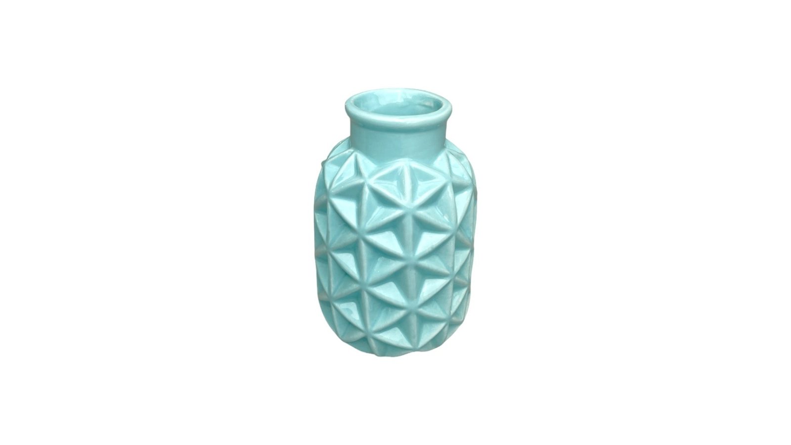 Vază ceramică rotundă model triunghiuri 6x9x15cm - bleu