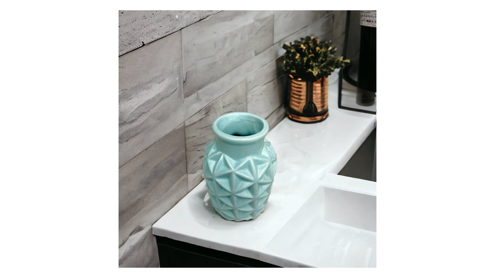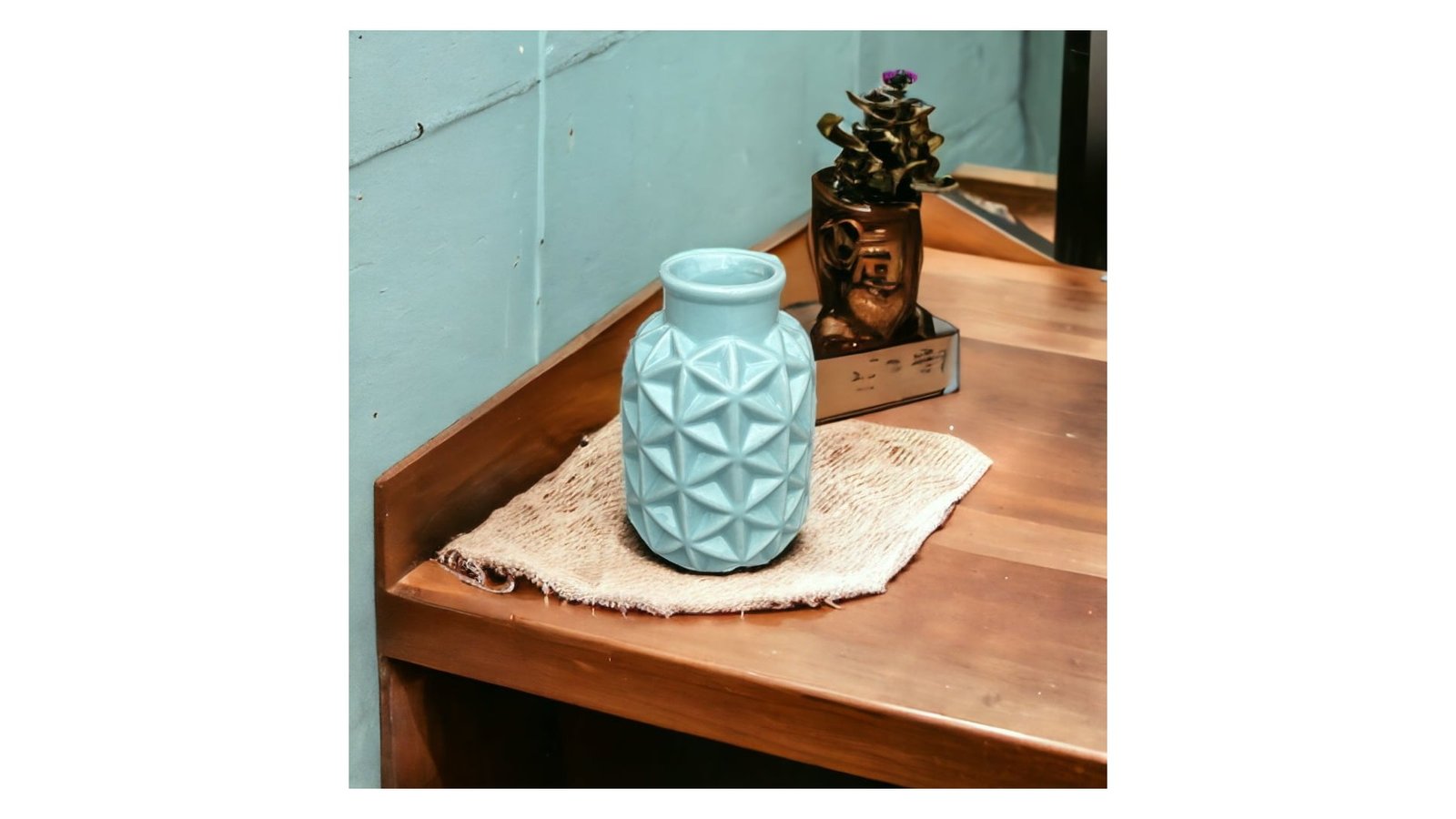 Vază ceramică rotundă model triunghiuri 6x9x15cm - bleu adaugă un aspect modern și atrăgător oricărui decor. Fabricată din ceramică rezistentă, această vază este ideală pentru a expune flori sau a crea aranjamente florale uimitoare. Caracteristici: Vază ceramică rotundă cu model triunghiuri Dimensiuni compacte de 6x9x15cm Fabricată din ceramică rezistentă și durabilă Design modern și atrăgător Potrivită pentru flori și aranjamente florale Utilizare: Decorarea mesei de dining sau a mesei de cafea Evenimente speciale precum nunți, petreceri sau aniversări Spații de lucru și birouri pentru a adăuga un element decorativ Cadouri pentru persoane dragi sau pentru ocazii speciale Amenajarea spațiilor de primire și a holurilor de hotel Beneficii: Adaugă un aspect modern și estetic oricărui spațiu Permite expunerea și accentuarea frumuseții florilor Material rezistent și durabil pentru utilizare îndelungată Ușor de curățat și de întreținut Oferă o modalitate simplă de a aduce prospețime și culoare în interior