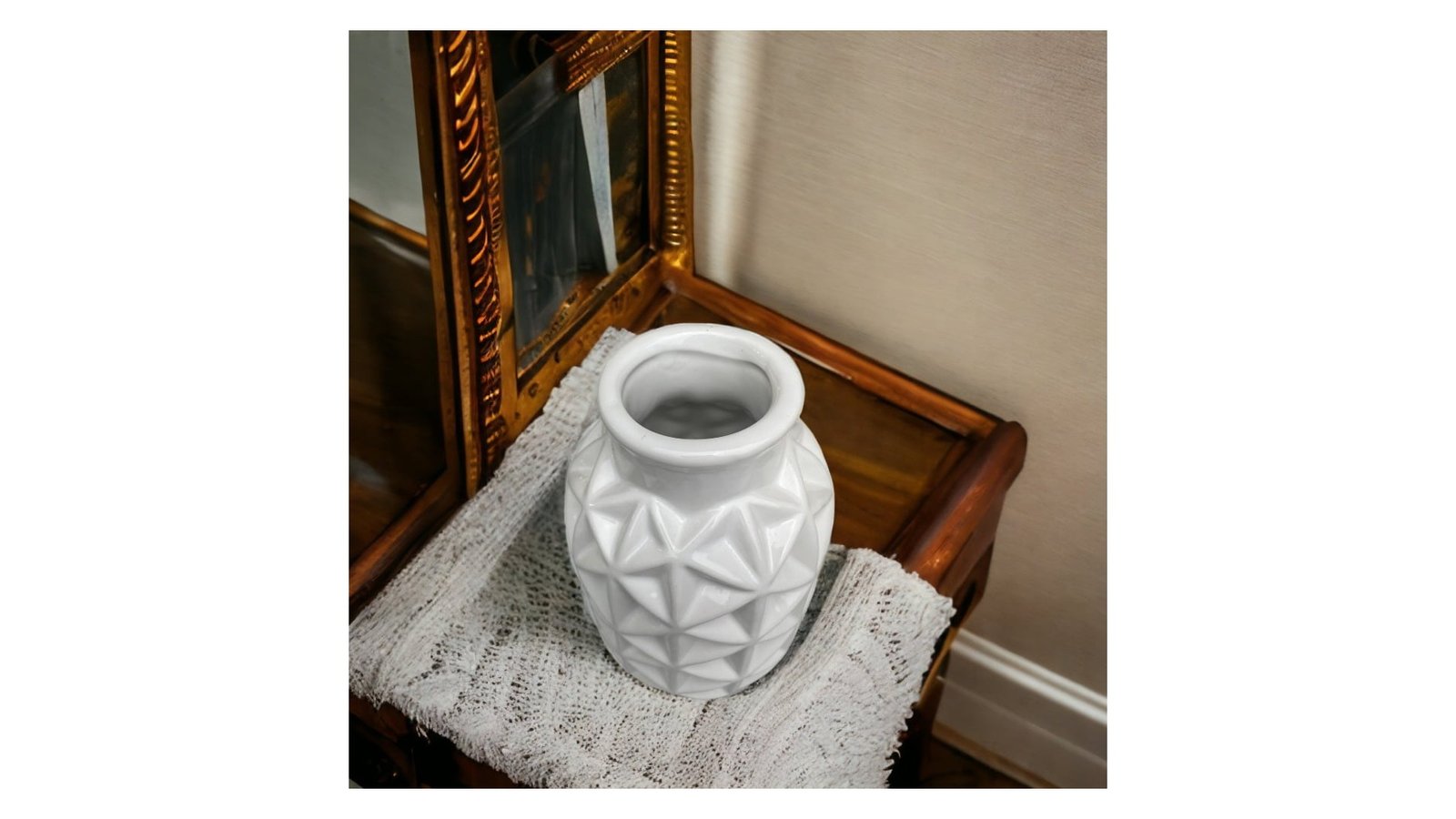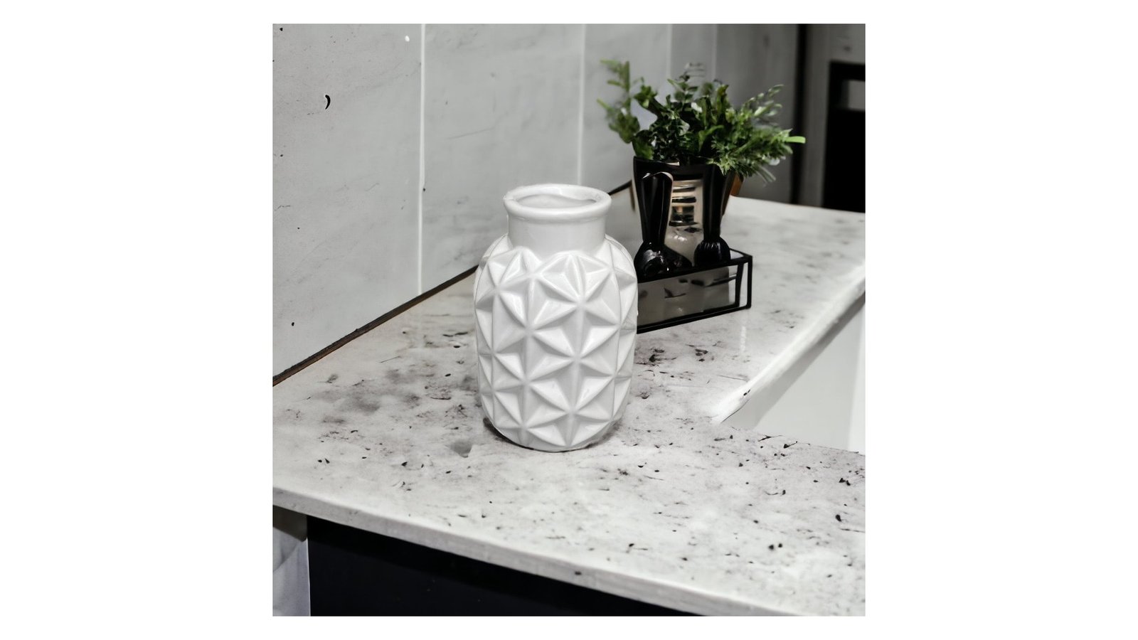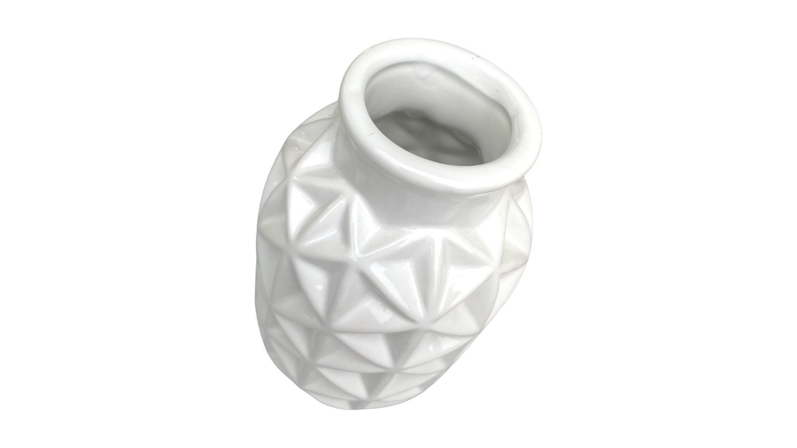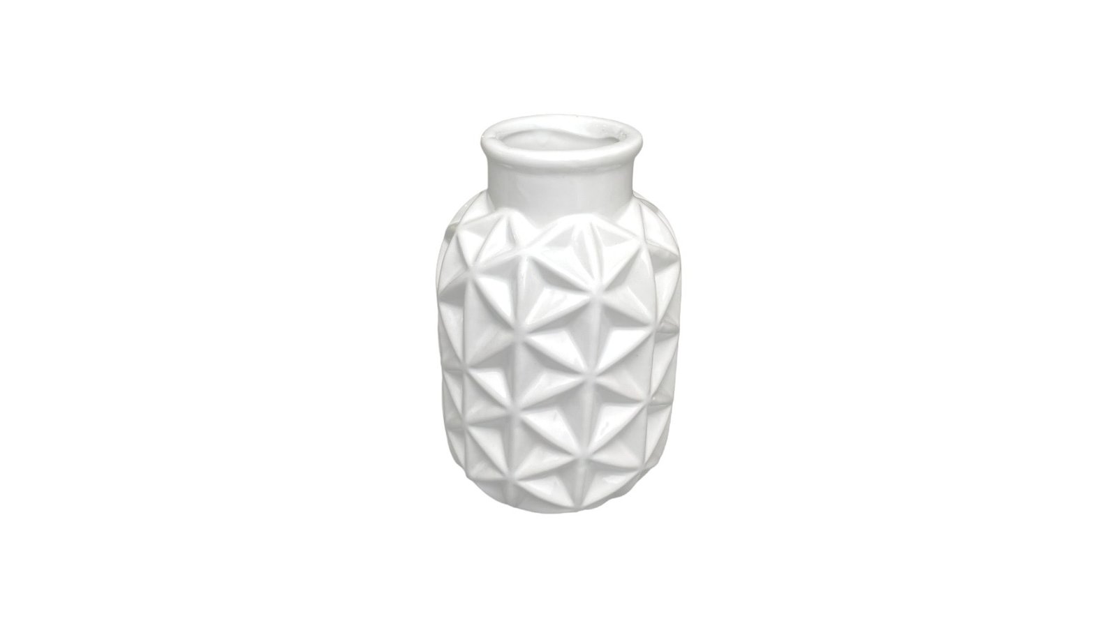 Vază ceramică rotundă model triunghiuri 6x9x15cm - alb