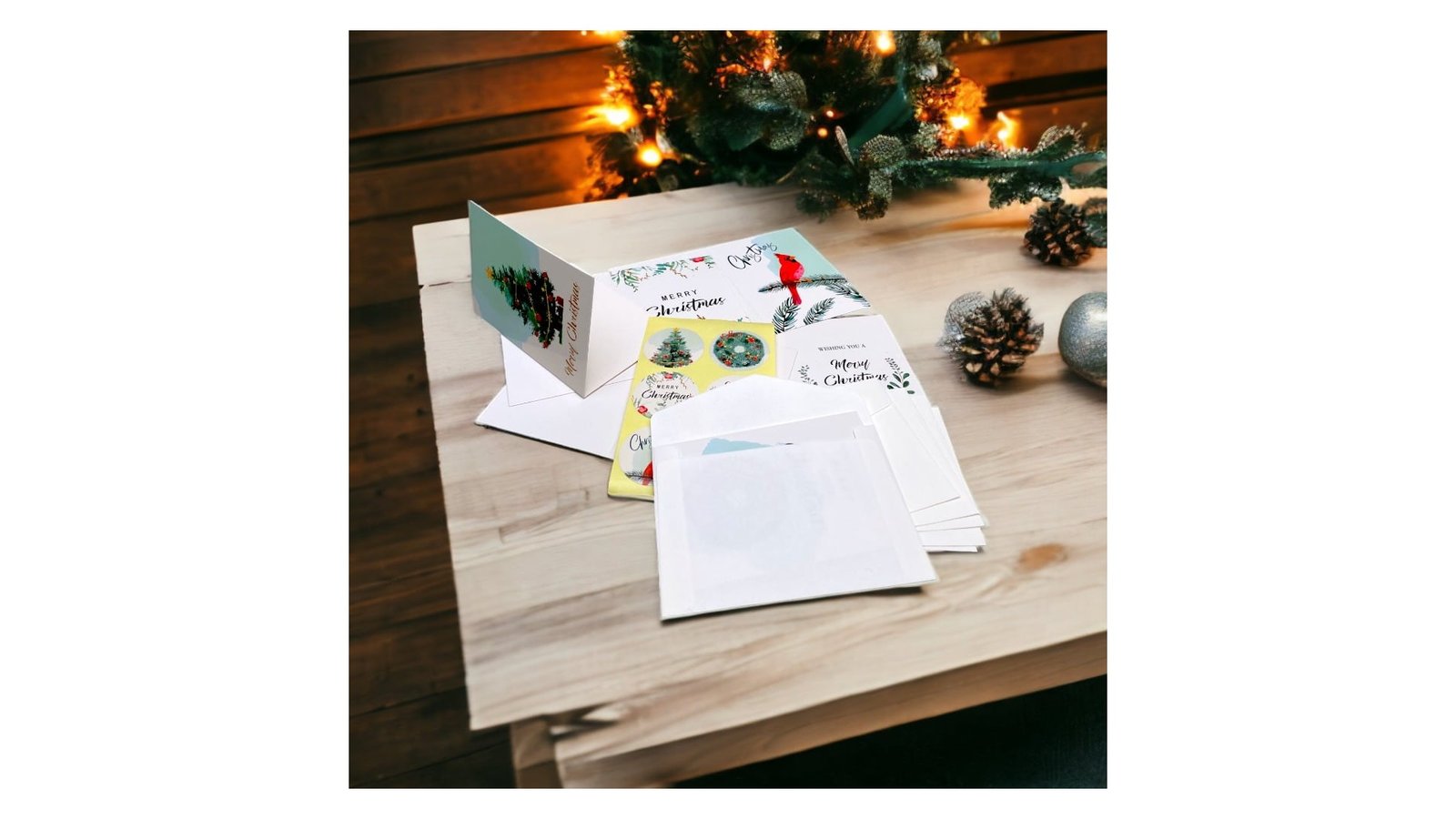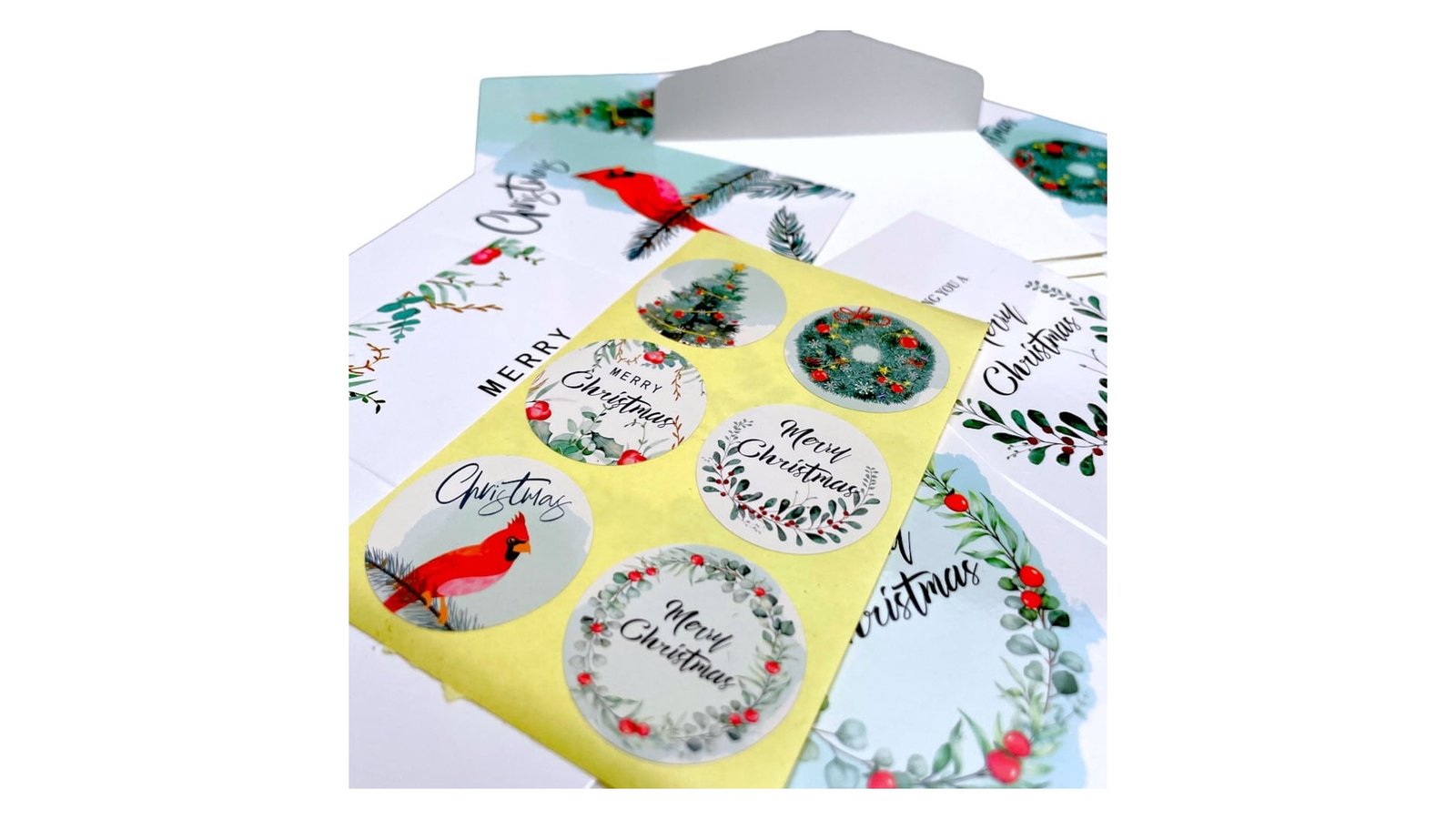 Set 6 felicitări de Crăciun cu sticker și plic - alb 7.2x10.5cm