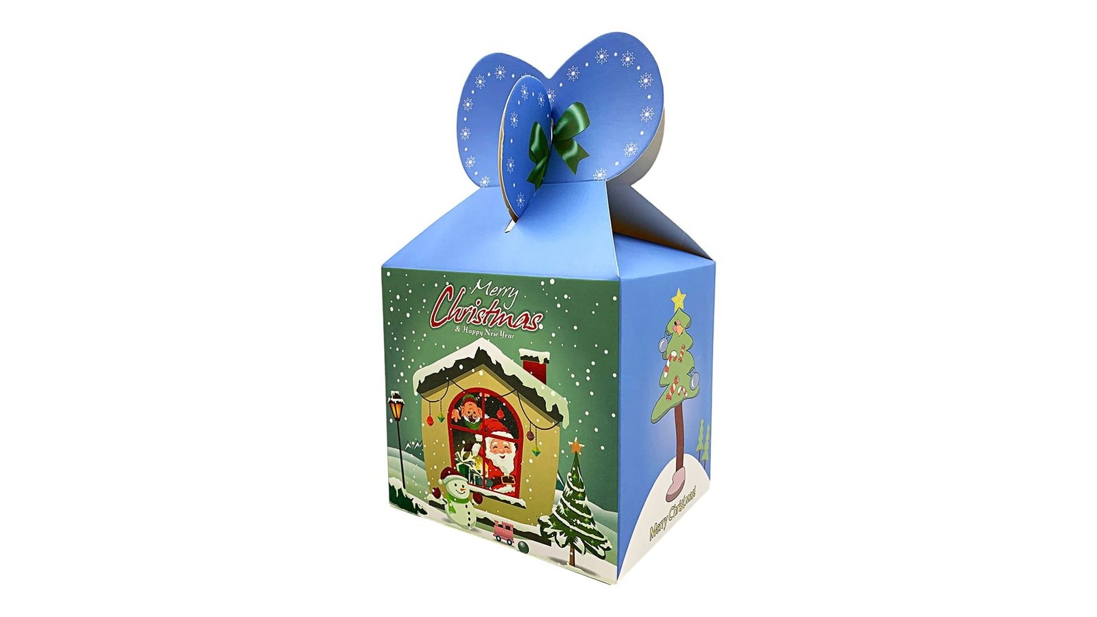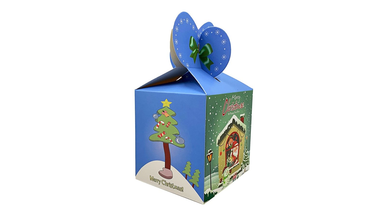 Cutie pătrată Craciun - albastru cutie din carton, folosită în principal pentru ambalarea cănilor, dar se poate folosi și pentru alte obiecte, cum ar fi: flori, cadouri, produse handmade, decorațiuni și multe altele perfectă pentru evenimente cum ar fi: în principal Crăciun, Moș Nicolae, petreceri pentru copii, zile de naștere, etc. carton lucios Cutiile se comercializează dezasamblate pentru a economisi spațiu.