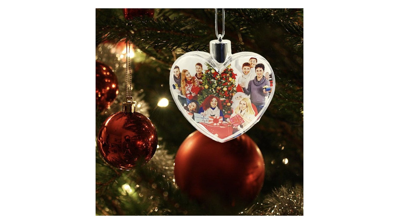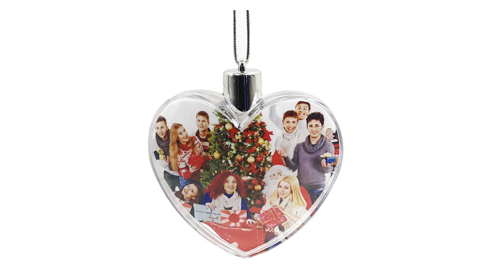 Glob inserție foto cu agățătoare - inimă Globurile se personalizează prin insertie foto pe ambele fețe, pentru a introduce poza se detașează capacul argintiu și se desface globul de la mijloc Produsul este ambalat în pungă de plastic sigilabilă Globul este prevăzut cu o sfoară decorativă pentru a agăța globul în brad. Pozele nu sunt incluse și nu oferim servicii de personalizare.