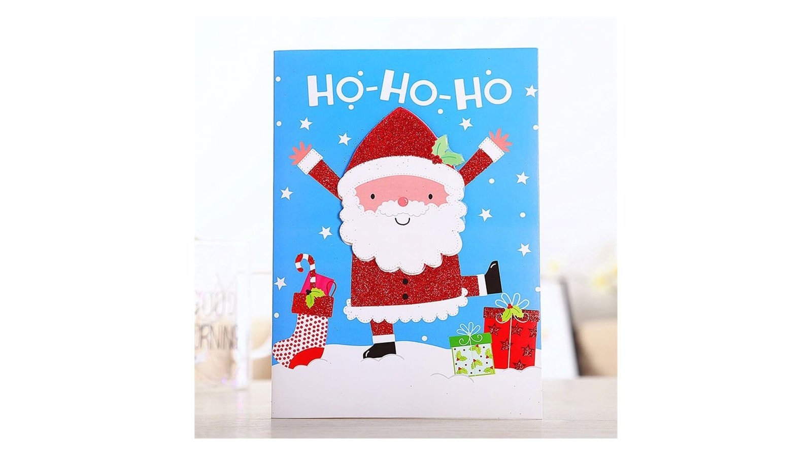 Felicitare muzicală Crăciun - Cadourile lui Moșu Muzica pornește când se deschide felicitarea Ambalată în folie de plastic LED de culoare roșie ce se aprinde când felicitarea este deschisă Fabricată din hârtie cartonată