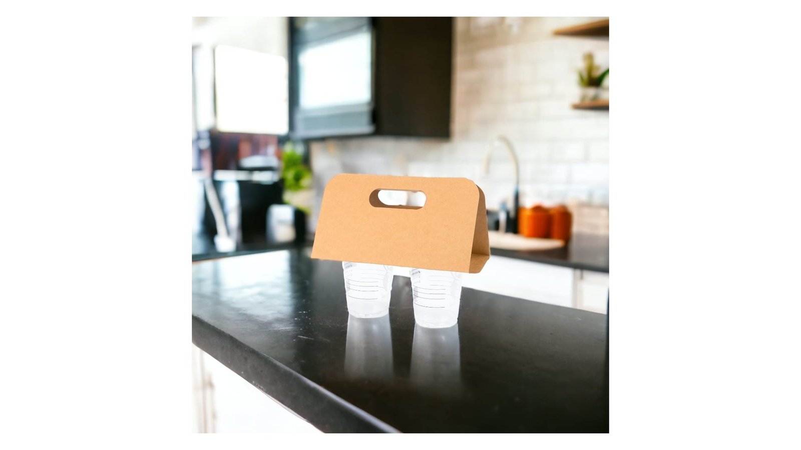 Suport kraft cu mâner pentru două pahare 24x39.5cm (set 50 buc) ideal pentru evenimente și servire rapidă. Caracteristici: Setul conține 50 de suporturi. Fiecare suport poate susține două pahare. Realizate din carton kraft durabil. Utilizare: Food truck-uri și servicii de catering. Petreceri în aer liber și picnicuri. Standuri de cafea și băuturi răcoritoare. Beneficii: Ecohospitaliere, prietenoase cu mediul înconjurător. Simplifică servirea, eliberează personalul. Oferă un aspect rustic și elegant mesei.