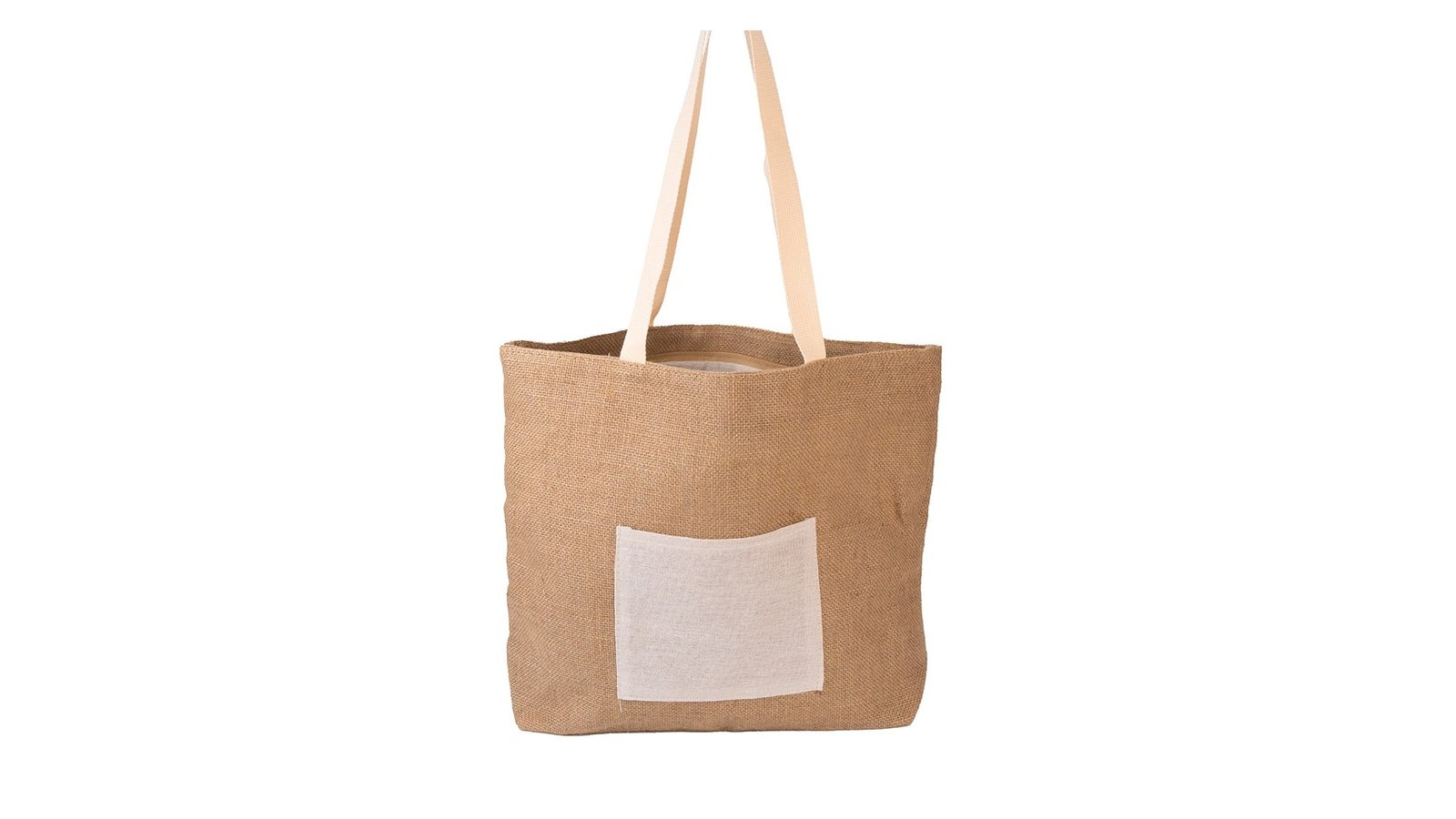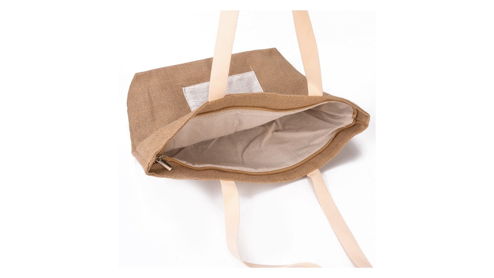 Sacoșă din iută naturală cu buzunar și fermoar - maro 45x35x10cm