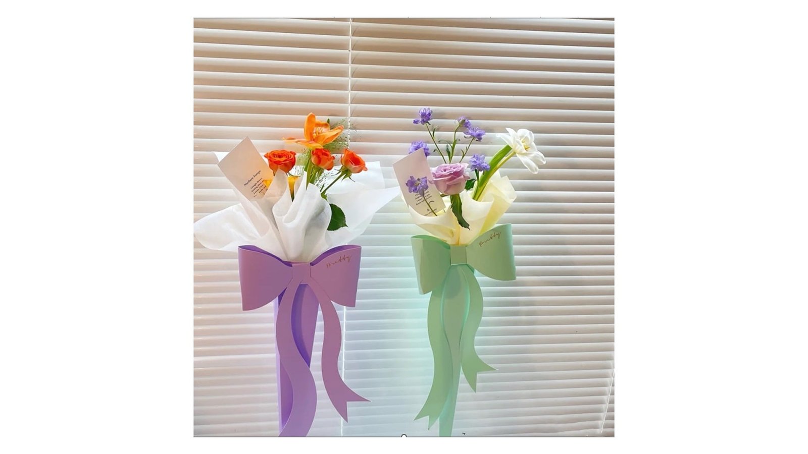 Suport buchet de flori cu fundă - bleu (set 10 buc)