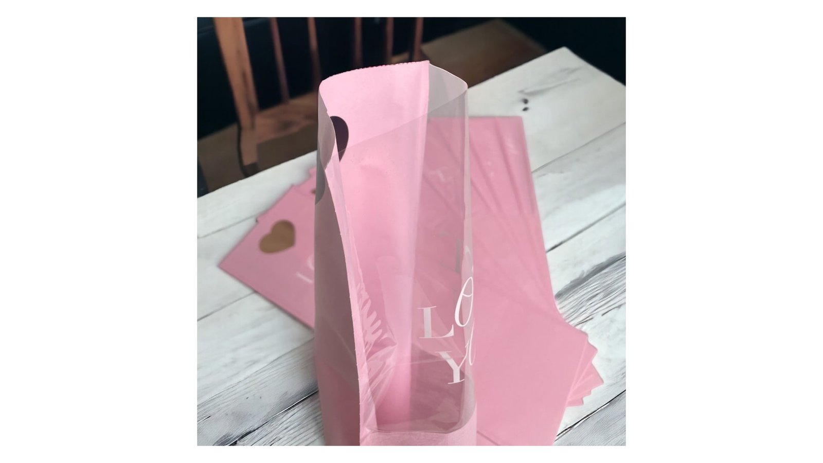 Pungi hârtie pentru flori Love you - roz (set 10 buc)