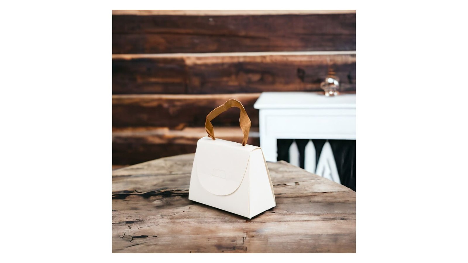 Cutie mică gentuță cu panglică maro din satin - alb (set 50 buc), experimentează eleganța simplă și rafinată cu setul nostru de 50 de cutii mici în formă de gentuță. Caracteristici: Cutii mici, elegante, în formă de gentuță. Panglică maro din satin pentru un mâner sofisticat. Set de 50 de bucăți, perfect pentru evenimente mari. Utilizare: Potrivite pentru ambalarea bijuteriilor sau obiectelor mici. Ideale pentru cadouri mici la nuntă sau petreceri. O alegere chic pentru ambalarea produselor handmade. Beneficii: Design rafinat și atractiv pentru orice eveniment. Panglică din satin pentru o notă de eleganță suplimentară. Set generos de 50 de cutii pentru diverse ocazii și evenimente. Cutiile se livrează pliate pentru a economisi spațiu și este necesară montarea lor.