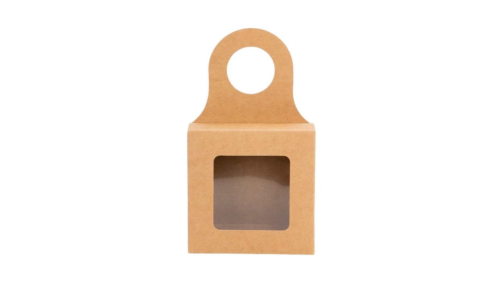 Cutie pătrată cu fereastră și agățătoare - kraft (set 25 buc)