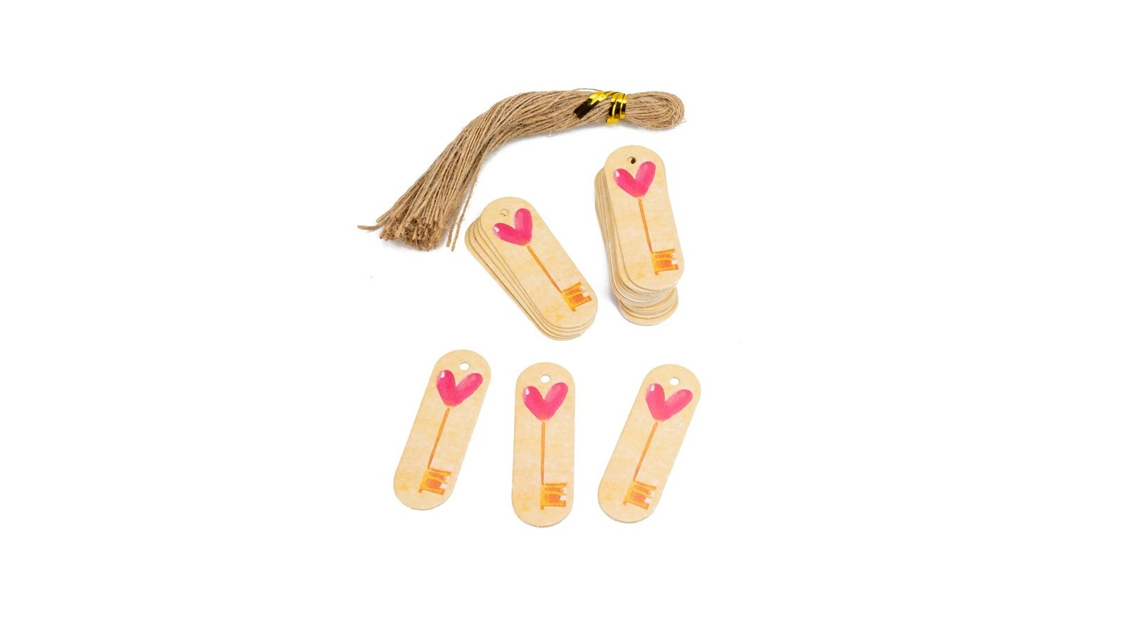 Etichete ovale cu sfoară model cheie inimă - roz (set 50 buc), dă o notă romantică și delicată cadourilor tale cu setul de 50 de etichete ovale, însoțite de sfoară. Caracteristici: Formă ovală distinctivă Sfoară fină pentru atașare ușoară Design cu model cheie și inimă Utilizare: Etichetare cadouri pentru evenimente romantice Decorare ambalaje de nunți sau aniversări Adăugare de eleganță la invitații sau mese festive Beneficii: Crează o prezentare sofisticată a cadourilor Adaugă un element romantic și de poveste Simplifică personalizarea și identificarea cadourilor Detaliu fermecător pentru ambalajele de evenimente speciale