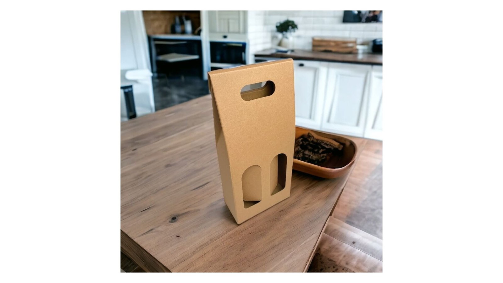 Cutii kraft cu mâner pentru doua sticle (set 10 buc), experimentează eleganța și funcționalitatea cu setul nostru de cutii kraft pentru două sticle. Caracteristici: Fabricate din carton kraft durabil și rezistent. Mânere solide pentru transport confortabil. Capacitate pentru ambalarea a două sticle în același timp. Utilizare: Perfecte pentru cadouri de vin sau șampanie în cuplu. Ideal pentru evenimente festive și romantice. O opțiune practică pentru ambalarea perechilor de băuturi premium. Beneficii: Ambalaj elegant și rezistent pentru cadouri de calitate. Mânerele asigură transportul facil și sigur. Creează o prezentare memorabilă pentru produsele tale. Set de 10 cutii pentru diverse ocazii speciale și evenimente. Cutiile se livrează pliate pentru a economisi spațiu și este necesară monta