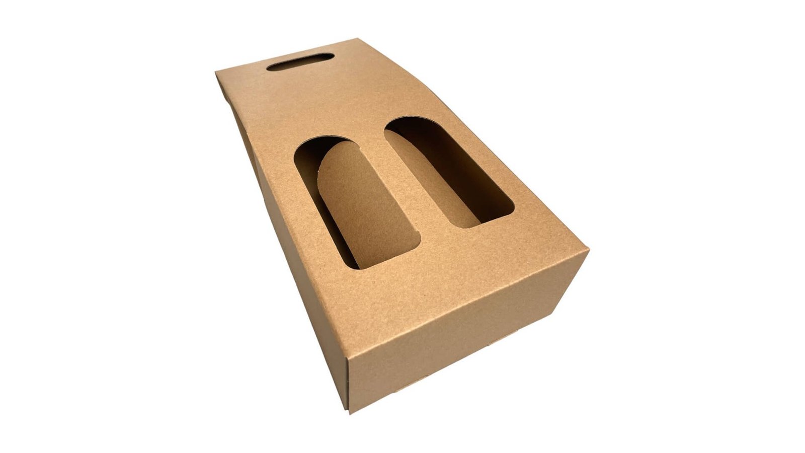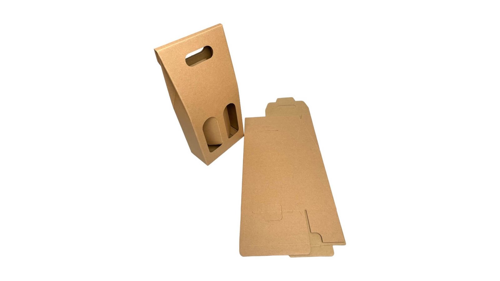 Cutii kraft cu mâner pentru doua sticle (set 10 buc)