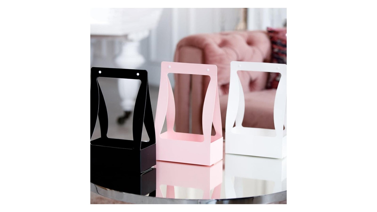 Cutii cu mâner tip fereastră - alb se pot folosi pentru ambalaje de flori, buchete, cadouri, mărturii, produse handmade, decorațiuni și multe altele perfecte pentru evenimente cum ar fi: nunți, botezuri, Crăciun, Paște, Valentine's Day, mărțișor, 8 martie, petreceri pentru copii, zile de naștere, etc. Cutiile se livrează pliate pentru a economisi spațiu.