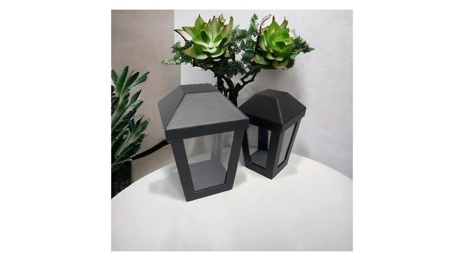 Set 2 cutii în formă de felinar cu capac - negru