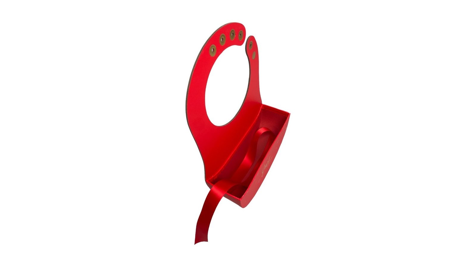 Cutie ovală deschisă cu mâner și panglică - roșu