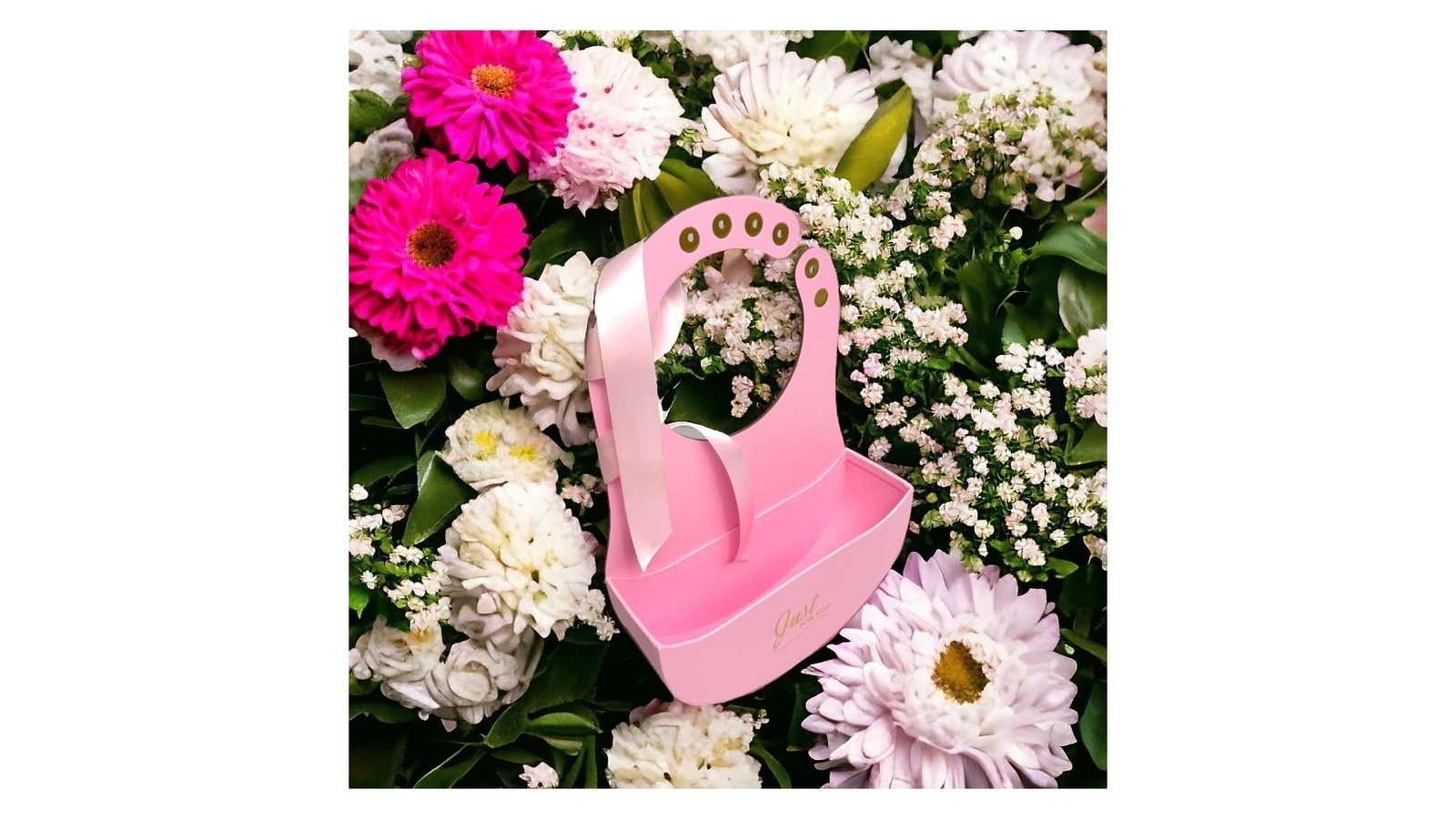 Cutie ovală deschisă cu mâner și panglică - roz