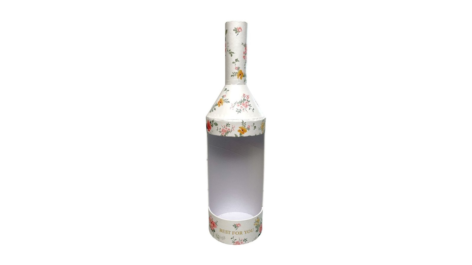Cutie în formă de sticlă model floral - alb