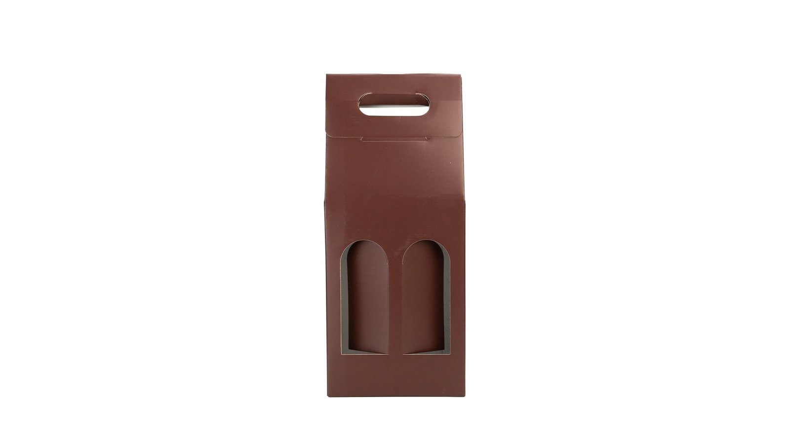 Cutie cu mâner pentru 2 sticle - maro (set 10 buc)