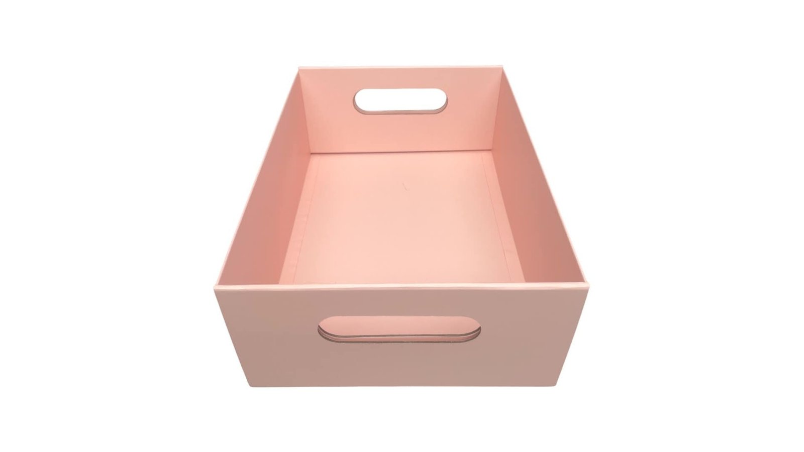 Cutie ladă cu mânere - roz, oferă o soluție practică și sigură pentru depozitare și transport. Caracteristici: Dimensiuni: 29x21.5x10.5cm. Manere robuste pentru transport ușor. Material rezistent pentru protecție durabilă. Utilizare: Ambalare și transport de produse fragile sau delicate. Depozitare ordonată în casă, birou sau depozit. Organizare eficientă pentru mutări și călătorii. Beneficii: Protecție și siguranță pentru obiectele depozitate. Ușor de transportat și manipulat datorită manerelor. Economie de spațiu și ordine în depozitare.