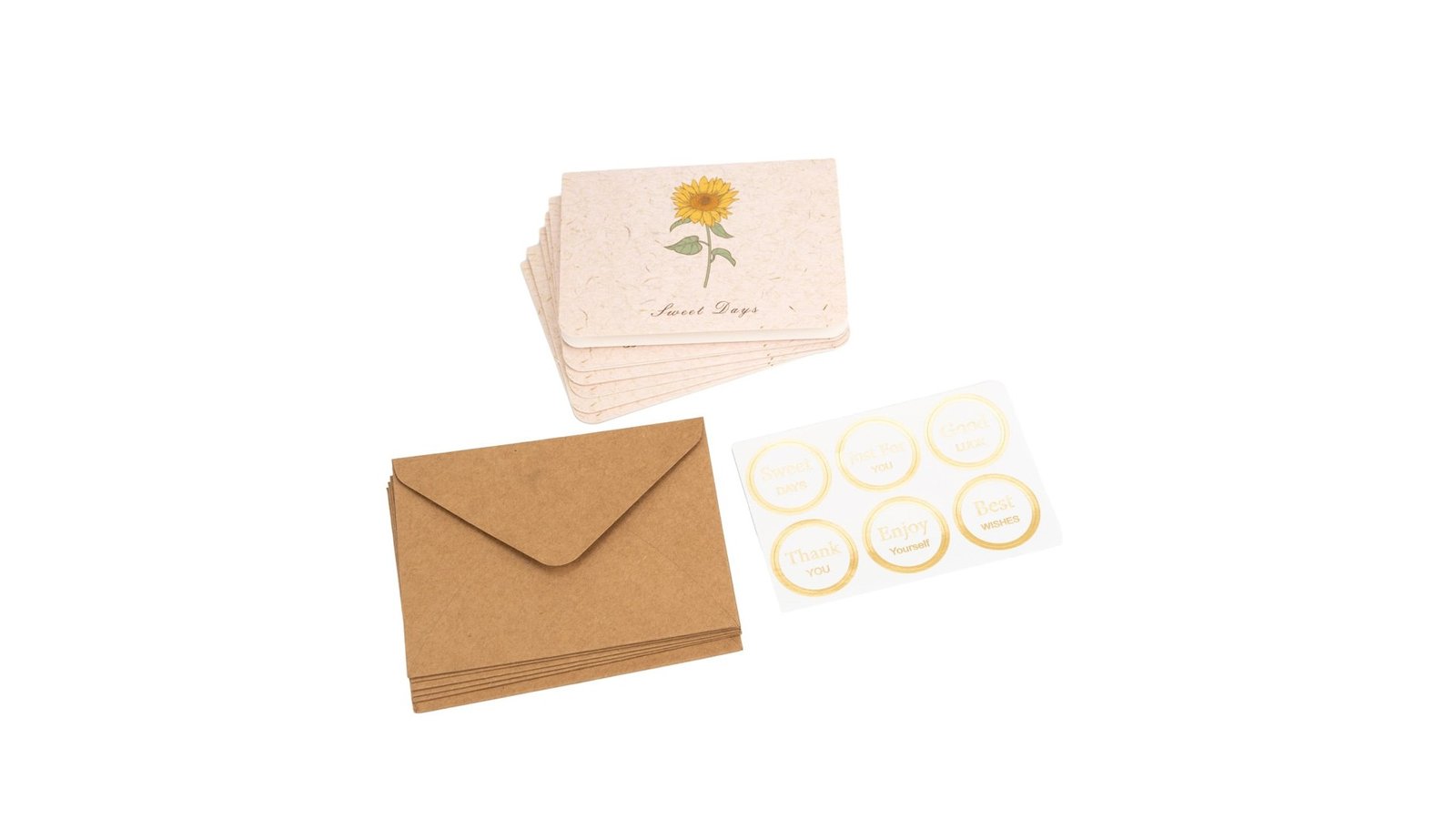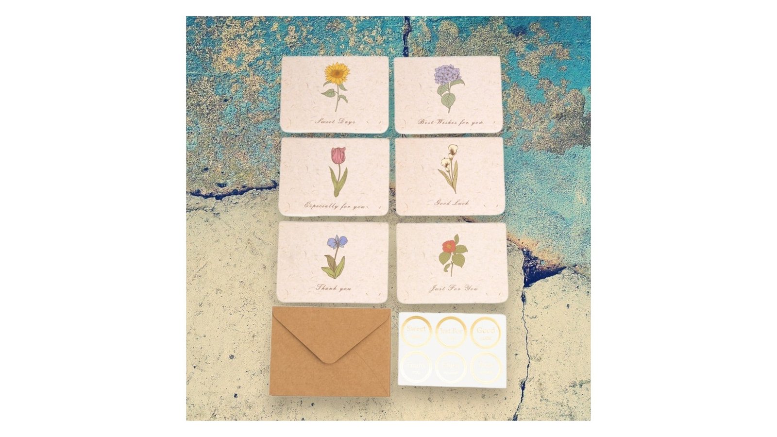Set 6 felicitări diferite model floral cu text și sticker - bej