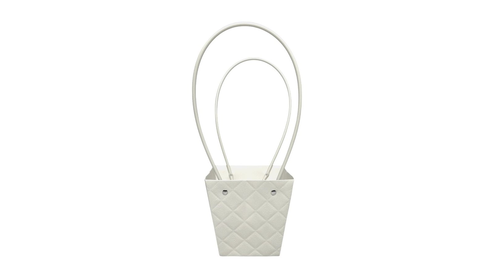 Sacoșe trapez model romburi cu mâner - alb (set 10 buc)