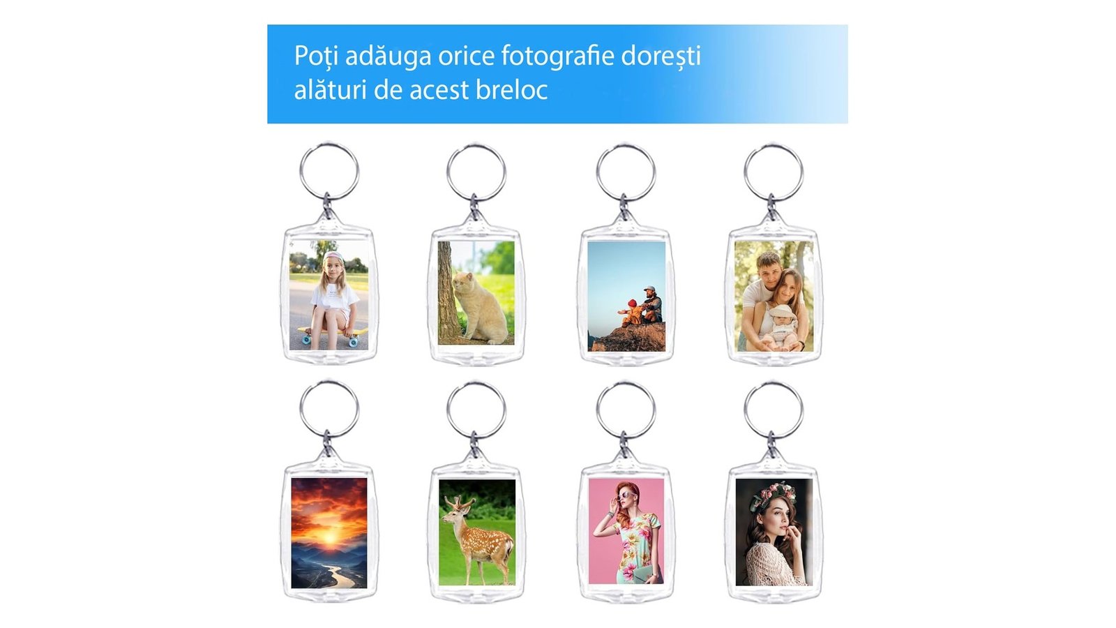 Breloc dreptunghiular transparent inserție foto 4,5x3,5cm vă permite să inserați o fotografie preferată sau o imagine amuzantă adăugând o notă personală vieții de zi cu zi. Caracteristici: Dimensiunea pozei: 3,4x2,3cm Transparent: Permite vizualizarea clară a fotografiei inserate Durabil: Fabricat din plastic rezistent la zgârieturi și lovituri Ușor de utilizat: Deschideți brelocul, introduceți fotografia și închideți-l din nou Ambalare: Fiecare breloc este ambalat intr-o pungă de plastic proprie Utilizare: Chei: Atașați brelocul la cheile de casă, mașină sau birou Rucsacuri: Agățați brelocul de rucsac pentru a-l personaliza și a-l face mai ușor de identificat Altele: Cadouri, accesorii handmade, proiecte DIY, suveniruri, amintiri memorabile și altele Beneficii: Organizare: Menține cheile