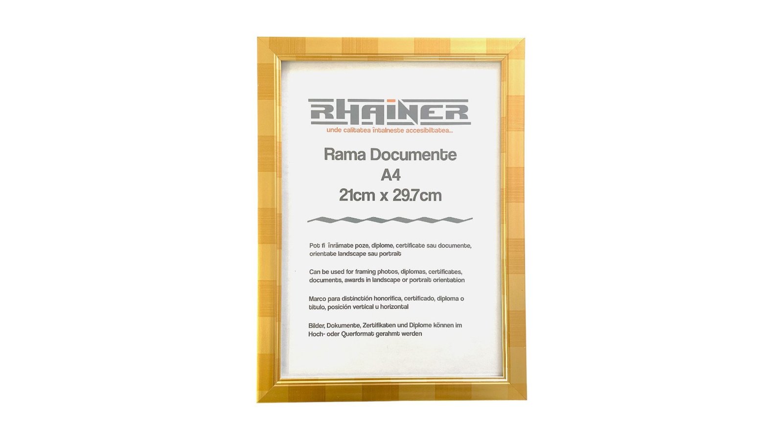 Ramă foto A4 - model Madrid auriu dimensiunea pozei: 21x30cm - A4 rama foto este fabricată din PS de înaltă calitate și de o densitate ridicată rama imită lemnul vopsit pot fi înrămate poze, diplome, certificate sau documente, orientate landscape sau portrait temă ramă: zi onomastică, zi de naștere, membru nou al familiei, ziua mamei, ziua tatălui, aniversare, Valentine's Day, mărțișor, Crăciun, Paște ramele sunt însoțite de suport pentru birou și agățătoare reglabilă ramele sunt ambalate în folie de plastic și au colțare din carton