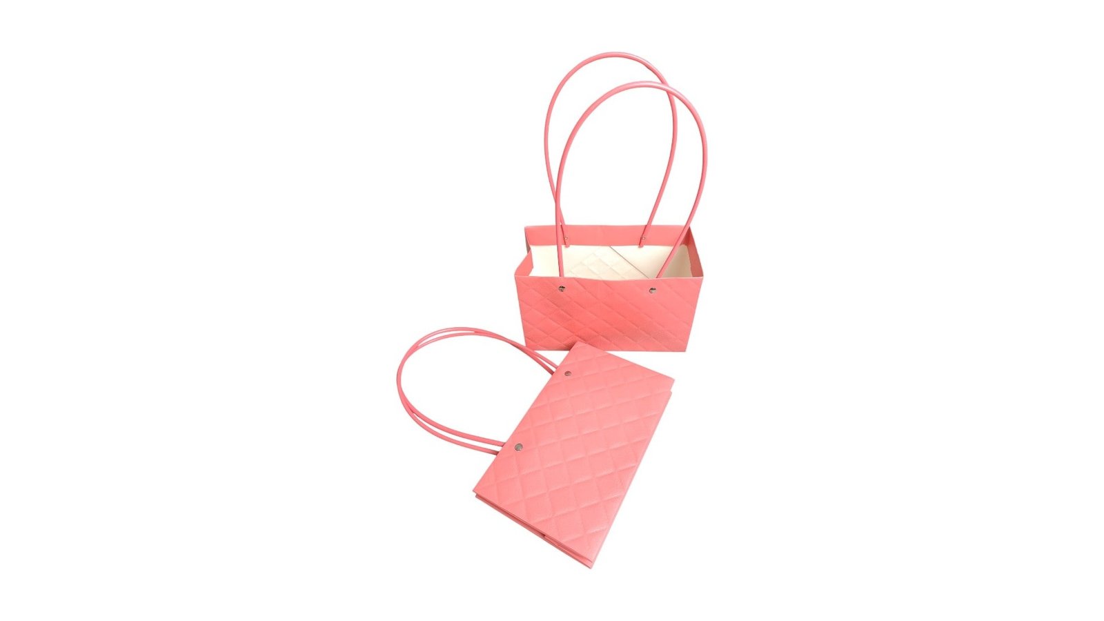 Sacoșe dreptunghiulare model romburi cu mâner - roz (set 10 buc)