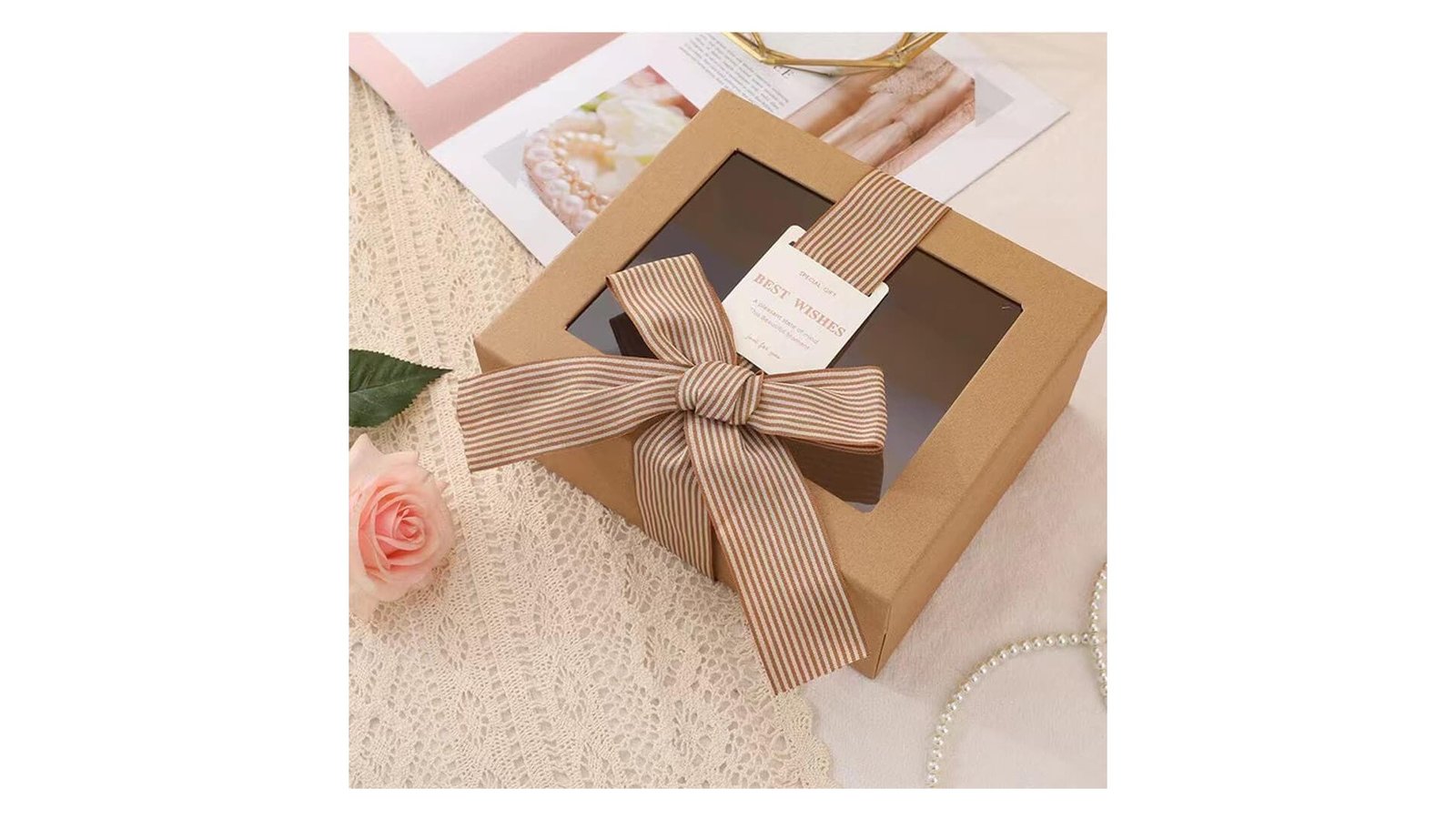 Cutie hârtie cu fereastră si fundă 21x18x9cm - kraft