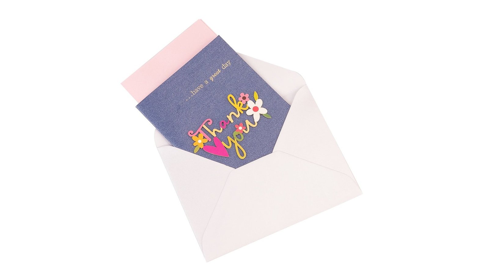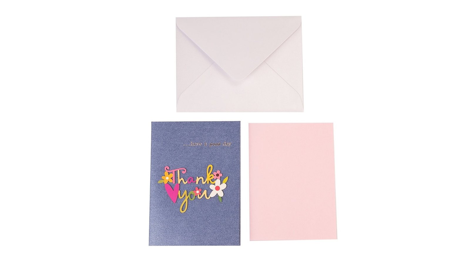 Felicitare 3D cu flori, mesaj Thank You și plic - albastru