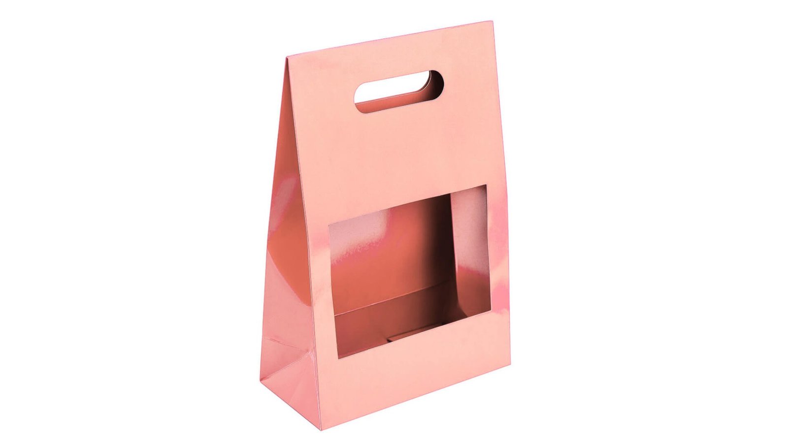 cutii cu fereastră și mâner - roz, dimensiune 37,5x25x12cm, soluția perfectă pentru ambalarea și prezentarea elegantă a produselor tale. Caracteristici: Mâner integrat pentru transport comod Material rezistent pentru protecția conținutului și interior rezistent la apă Design versatil potrivit pentru diverse evenimente Utilizare: Ambalare rafinată a cadourilor și suvenirurilor Prezentare atractivă a produselor de panificație și patiserie Potrivită pentru ambalarea produselor cosmetice și cadourilor corporate Beneficii: Vizualizare clară a conținutului prin fereastră Mâner integrat pentru transport fără efort Versatilitate pentru diverse ocazii și produse Eleganță și practicitate într-un singur ambalaj.