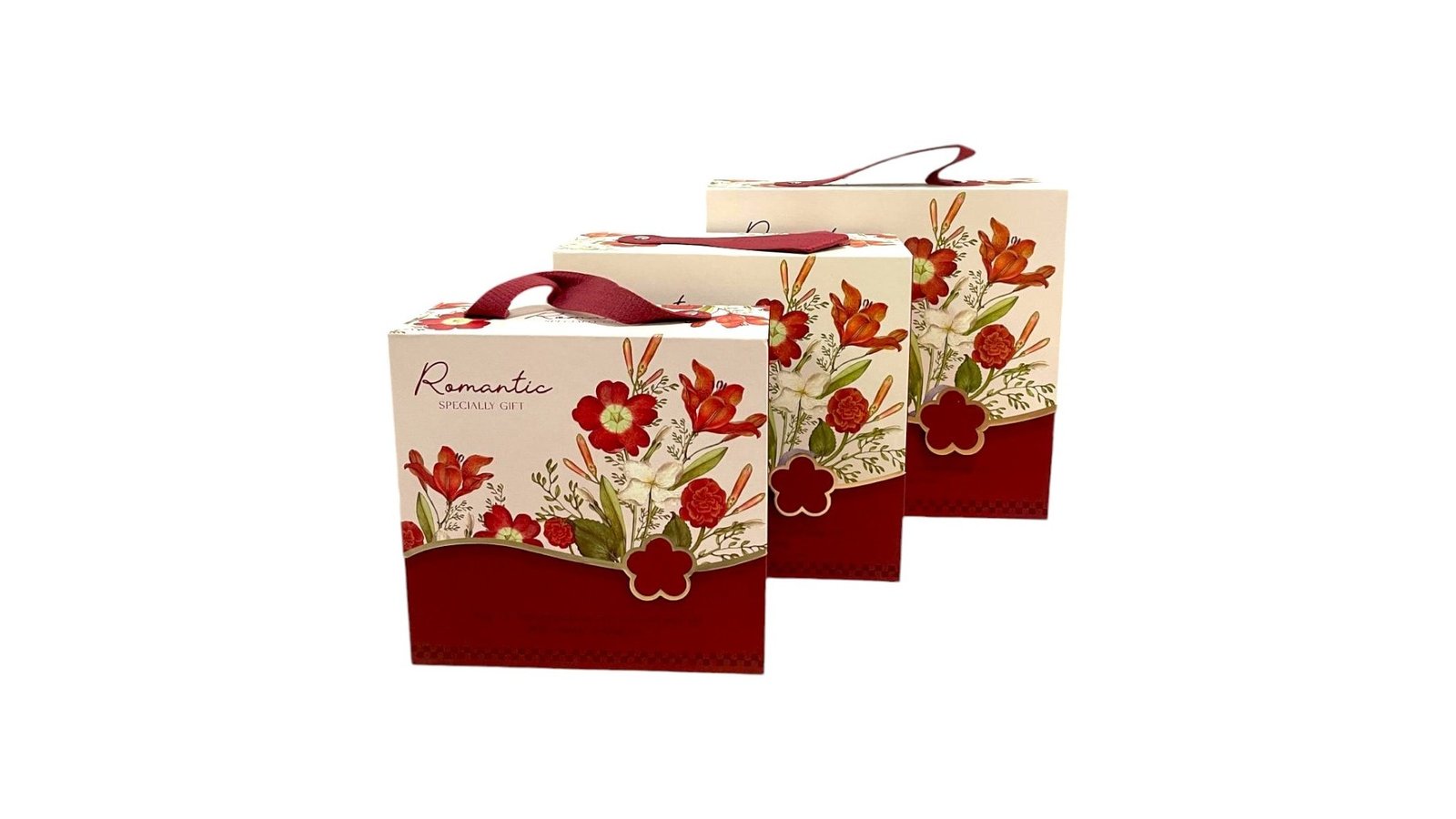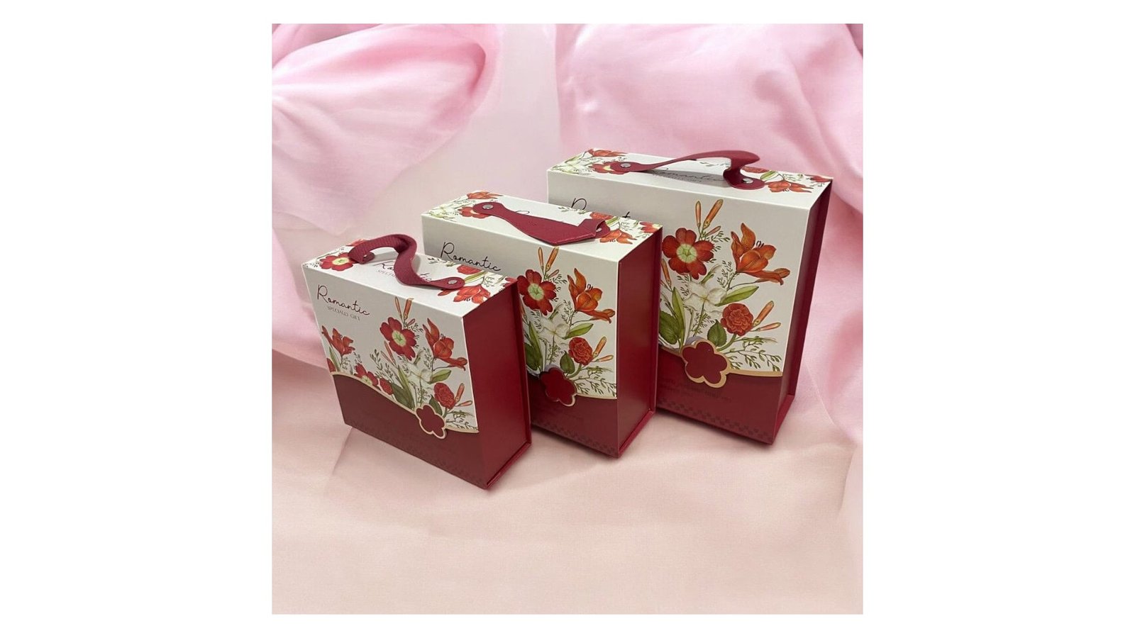Set 3 cutii stil gentuță pentru cadouri cu mâner - model 2 roșu , oferă o modalitate rafinată și practică de a prezenta darurile dvs. Cu un design floral delicat și mânere convenabile, aceste cutii adaugă o notă de eleganță oricărui cadou. Caracteristici: Set de 3 cutii de diferite dimensiuni Design floral cu mesajul "Romantic" Confecționate din hârtie rezistentă Mâner pentru transport ușor și închidere prin magnet Utilizare: Ambalarea cadourilor pentru diverse ocazii Decorațiuni pentru evenimente sau vitrine Ambalaj pentru produse în magazine sau afaceri mici Cutii decorative pentru aranjamente florale Beneficii: Economisește timp la împachetarea cadourilor Oferă o prezentare elegantă și memorabilă a darurilor Adaugă un plus de stil și rafinament cadourilor oferite