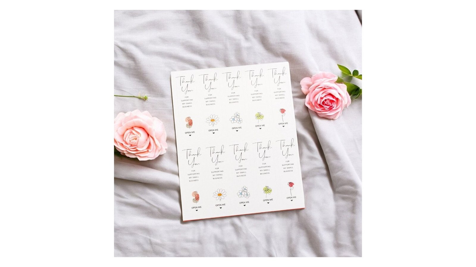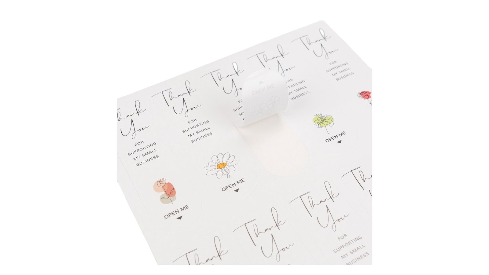 Stickere lungi ovale cu mesaj Thank you - model 2 (set 100 buc), sunt o modalitate artistică și plăcută de a exprima recunoștință clienților, completate de mesajul "Thank you for your purchase". Designul unic combină arta modernă cu un sentiment de apreciere, oferind o modalitate elegantă de a personaliza pachetele și produsele. Caracteristici: Setul conține 10 foi a câte 10 stickere Mesaj de mulțumire "Thank you for supporting my small bussines" și "Open me" pe fiecare sticker Material autoadeziv Utilizare: Sigilarea pachetelor și coletelor pentru clienți Decorarea ambalajelor produselor Etichetarea produselor la târguri și expoziții Beneficii: Îmbunătățesc experiența clienților prin adăugarea unei note artistice și personale Consolidează identitatea brandului prin design unic și memorabi
