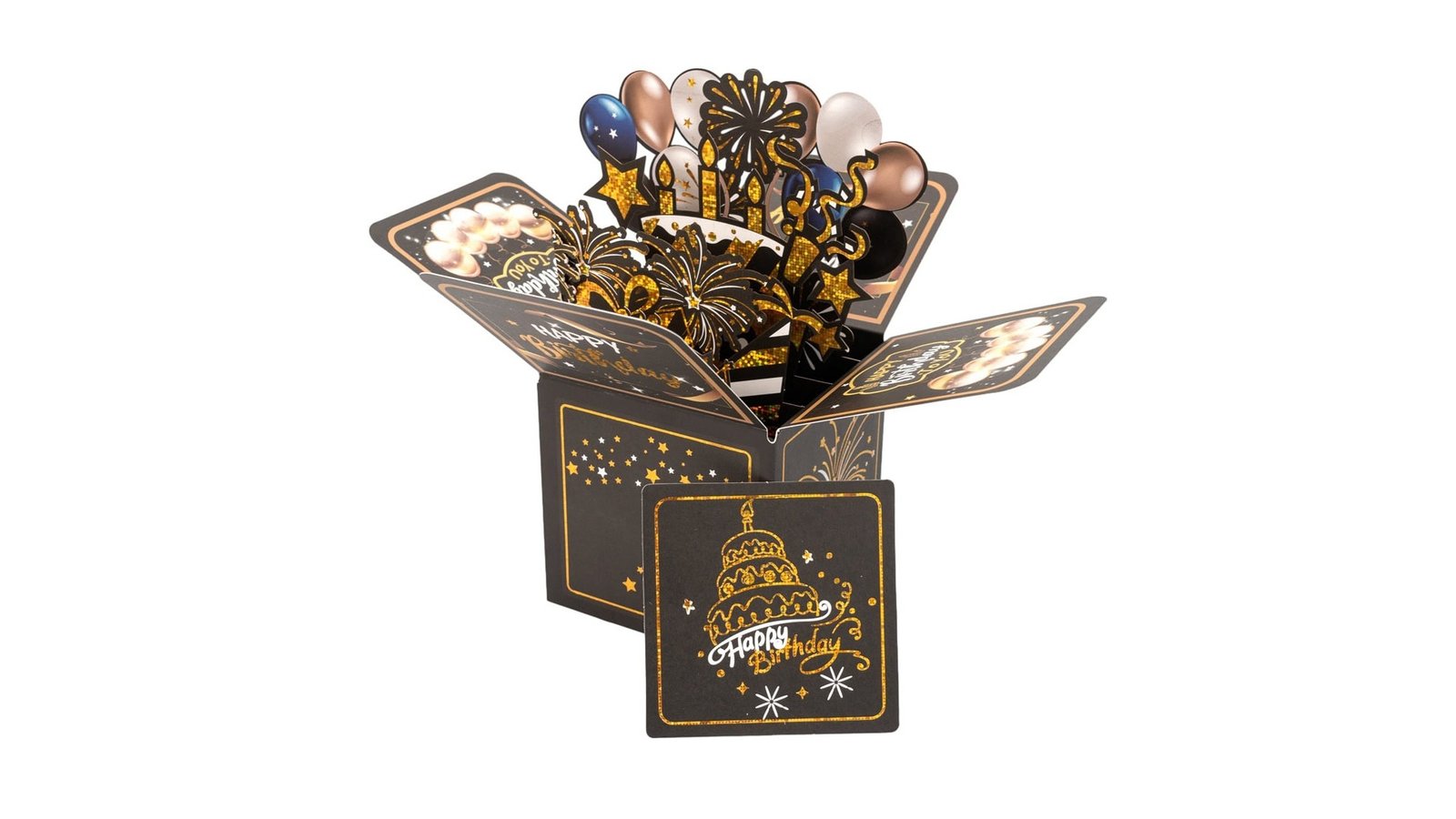 Felicitare explozivă 3D - model 6, este o felicitare pop-up 3D spectaculoasă pentru aniversări. Designul său prezintă o explozie de elemente festive care ies din cutie atunci când este deschisă, creând o surpriză vizuală impresionantă. Felicitarea combină culori vibrante, forme variate și detalii strălucitoare pentru a transmite un mesaj de sărbătoare memorabil. Caracteristici: Design pop-up 3D Temă de petrecere aniversară cu elemente festive variate Include mesajul "Happy Birthday" și diverse decorațiuni de petrecere Utilizare: Felicitare de aniversare pentru prieteni sau familie Invitație specială pentru o petrecere aniversară Decor de masă pentru o petrecere Element decorativ pentru vitrina unui magazin de cadouri Beneficii: Oferă o experiență vizuală unică și memorabilă pentru destinat