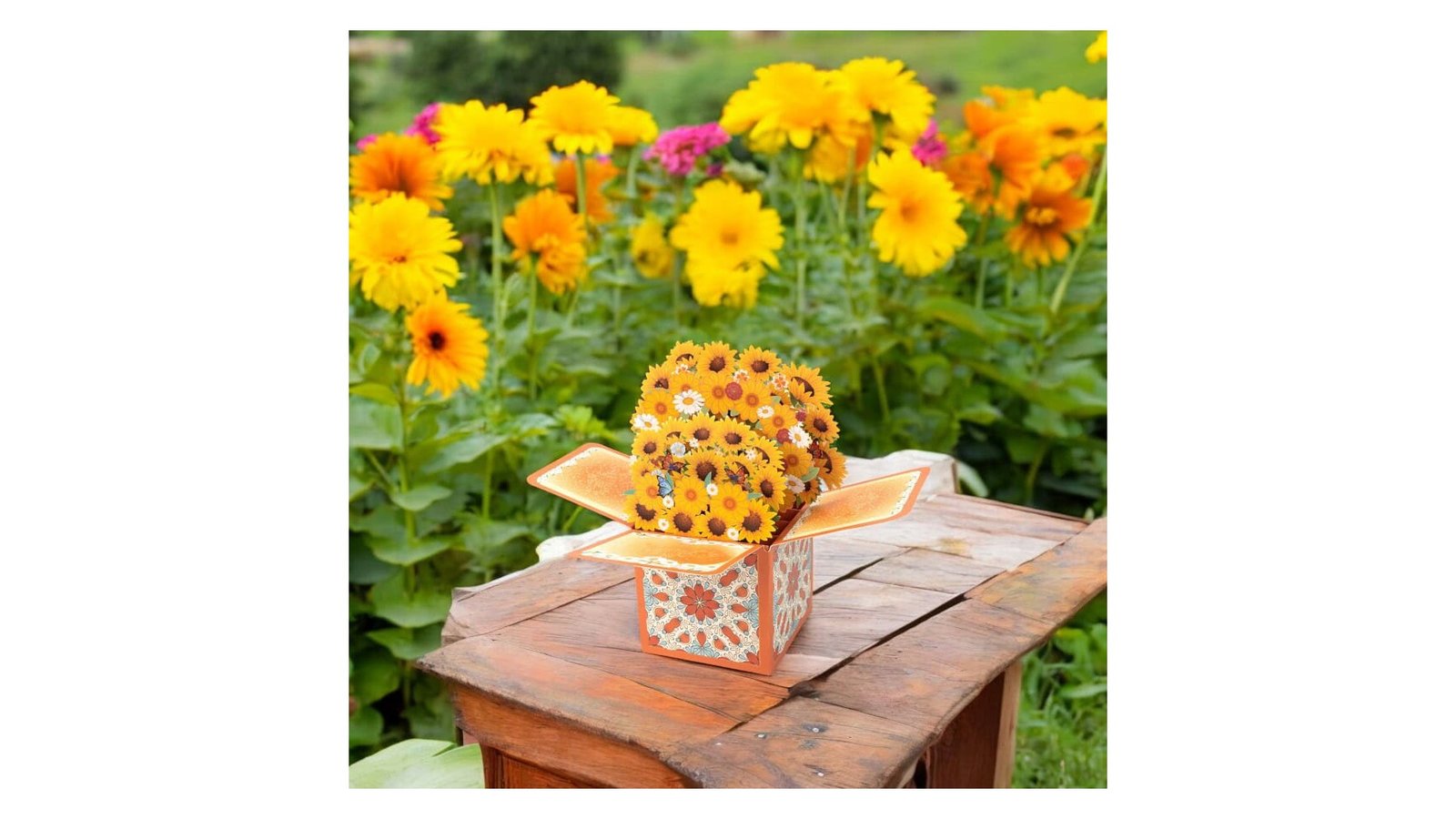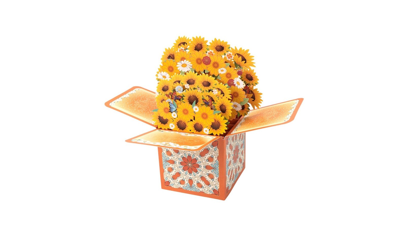 Felicitare explozivă 3D - model 5, o felicitare interactivă și spectaculoasă, care se deschide pentru a dezvălui un buchet colorat de flori tridimensionale. Designul combină elemente florale cu fluturi și detalii decorative, totul într-o prezentare care surprinde și încântă prin efectul său pop-up. Caracteristici: Design pliabil 3D care se deschide într-un aranjament floral complex Elemente decorative pe exteriorul cutiei Mesaj personalizabil pe panoul frontal, cu tematică de sărbătoare Utilizare: Felicitare unică pentru diverse ocazii (zile de naștere, mulțumiri, felicitări) Decorațiune de masă pentru evenimente speciale Cadou surpriză pentru iubitorii de flori sau artă Invitație specială pentru evenimente importante Beneficii: Oferă o experiență vizuală și tactilă memorabilă pentru destinatar Combină funcționalitatea unei felicitări cu aspectul unui cadou floral Poate fi păstrată și expusă ca obiect decorativ de lungă durată