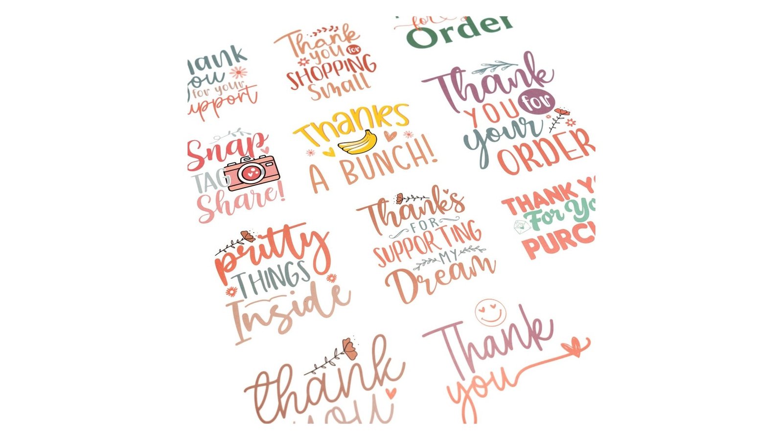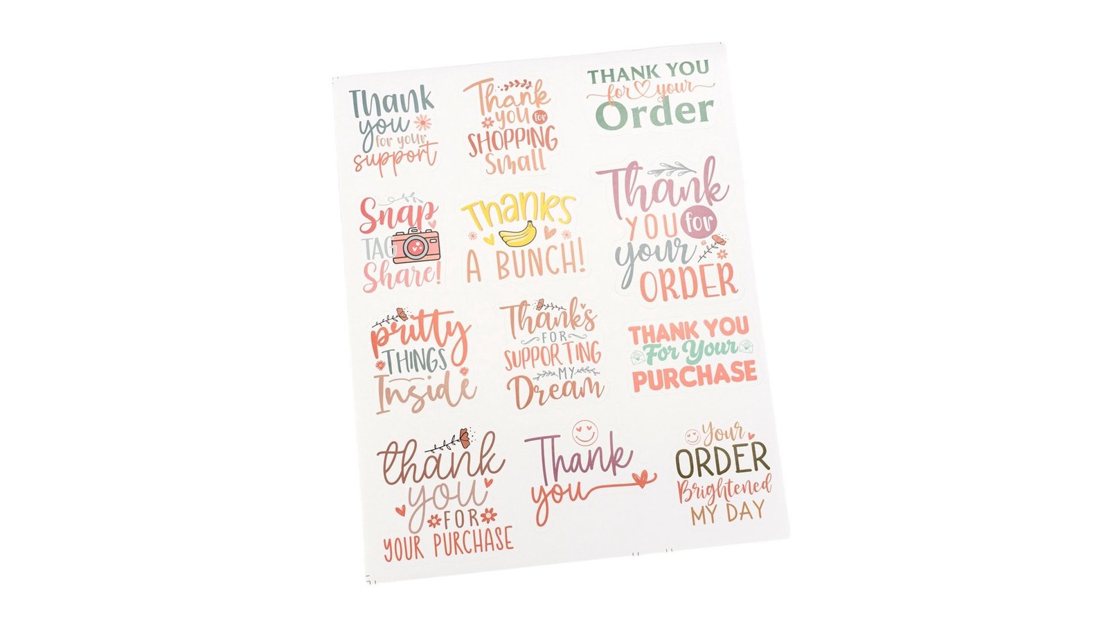 Stickere 12 modele diferite cu mesaj - model 5 mix (set 120 buc), oferă o varietate de opțiuni pentru a exprima recunoștința față de clienți sau susținători. Conținând 10 foi, fiecare cu 12 stickere diferite, setul prezintă un design colorat și modern, cu diverse mesaje și ilustrații care se potrivesc multor ocazii și stiluri de afaceri. Caracteristici: 10 foi cu câte 12 stickere unice per foaie (120 stickere), diferite dimensiuni (3-6cm) Mesaje variate de mulțumire și apreciere Design colorat cu fonturi și ilustrații diverse Stickere autoadezive, ușor de aplicat Utilizare: Personalizarea pachetelor pentru comenzi online Decorarea pungilor de cadou pentru clienți Crearea de etichete pentru produse artizanale Personalizarea produselor pentru evenimente speciale sau promoții Beneficii: Îmbunătățește experiența clientului prin mesaje personalizate Sporește imaginea profesională a afacerii cu stickere de calitate Oferă versatilitate în comunicarea cu clienții pentru diverse ocazii Economisește timp prin utilizarea de mesaje pre-concepute și atractive vizual