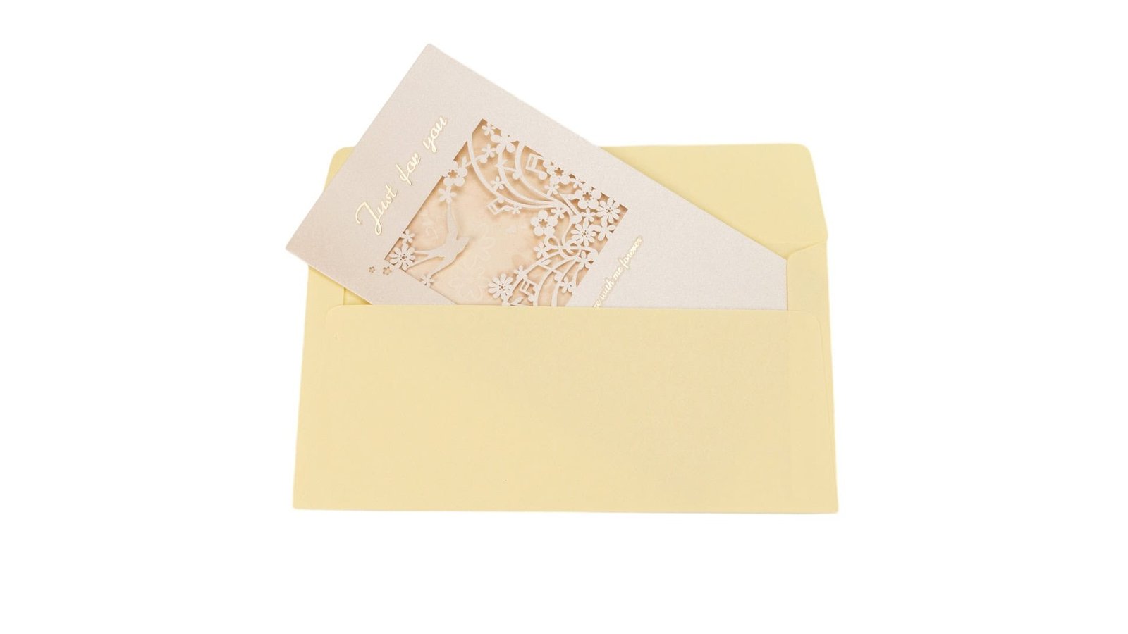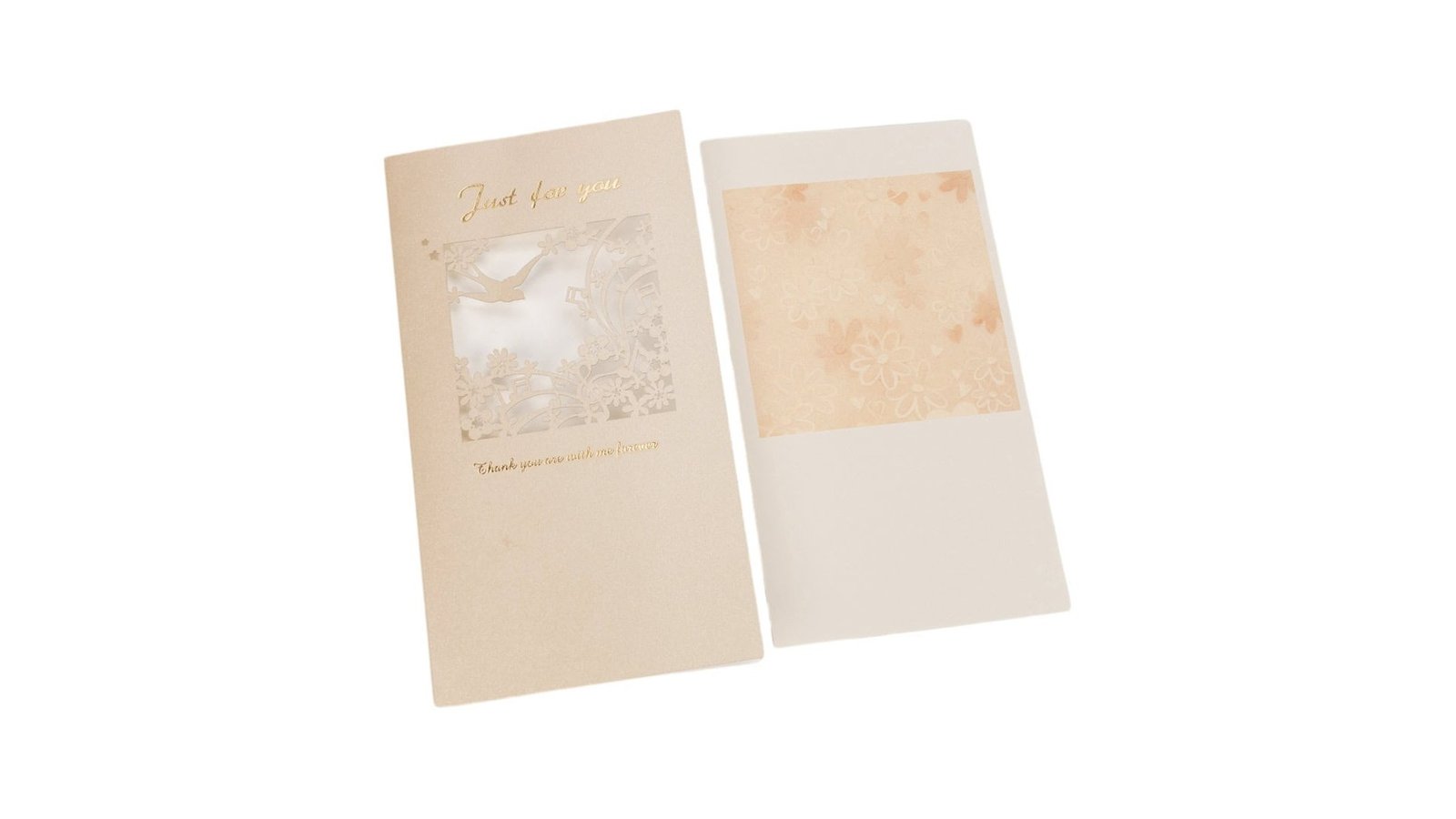 Felicitări cu fereastră model floral și plic - bej (set 10 buc)