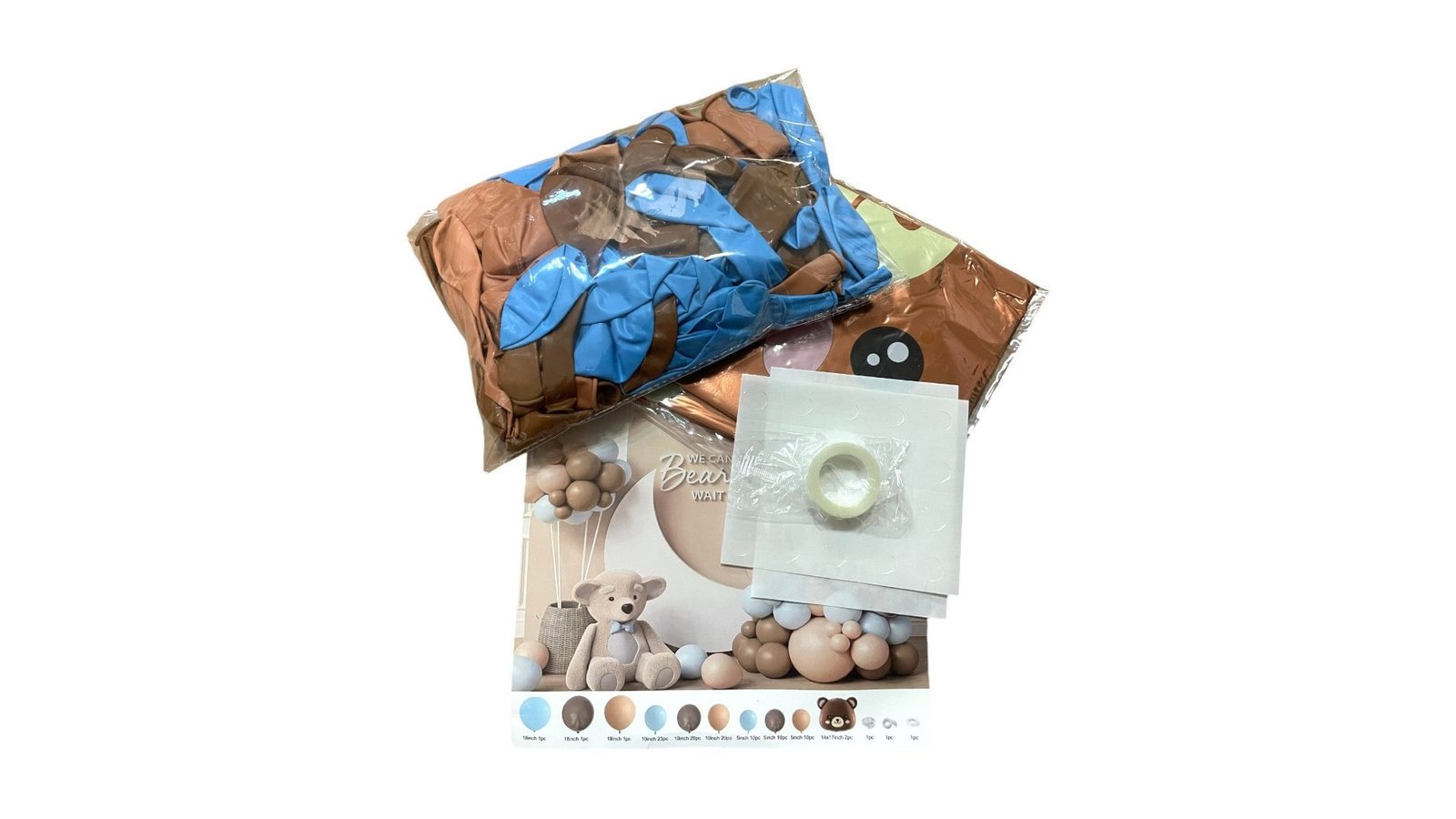 Set 100 baloane stil arcadă cu ursuleț maro - model 6 bleu