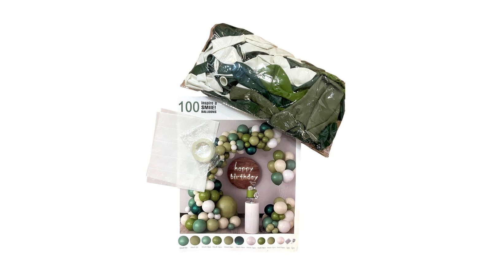 Set 100 baloane stil arcadă - model 10 verde . Acest set elegant și versatil de 100 de baloane este perfect pentru a crea o atmosferă festivă și memorabilă la orice eveniment. Cu o combinație rafinată de baloane verde și alb, acest kit este ideal pentru a adăuga o notă de sofisticare și romantism decorului tău. Caracteristici: Baloane de înaltă calitate: Fabricate din materiale durabile, baloanele sunt rezistente și își păstrează forma pentru o lungă perioadă de timp Ușor de asamblat: Kit-ul include toate elementele necesare pentru a crea o arcadă spectaculoasă în doar câteva minute Include: Baloane late, baloane rotunde și accesorii pentru legare Utilizare: Petreceri: Creează un fundal pentru fotografii și videoclipuri la petreceri de aniversare, nunți, botezuri sau logodne Decoruri: Adau